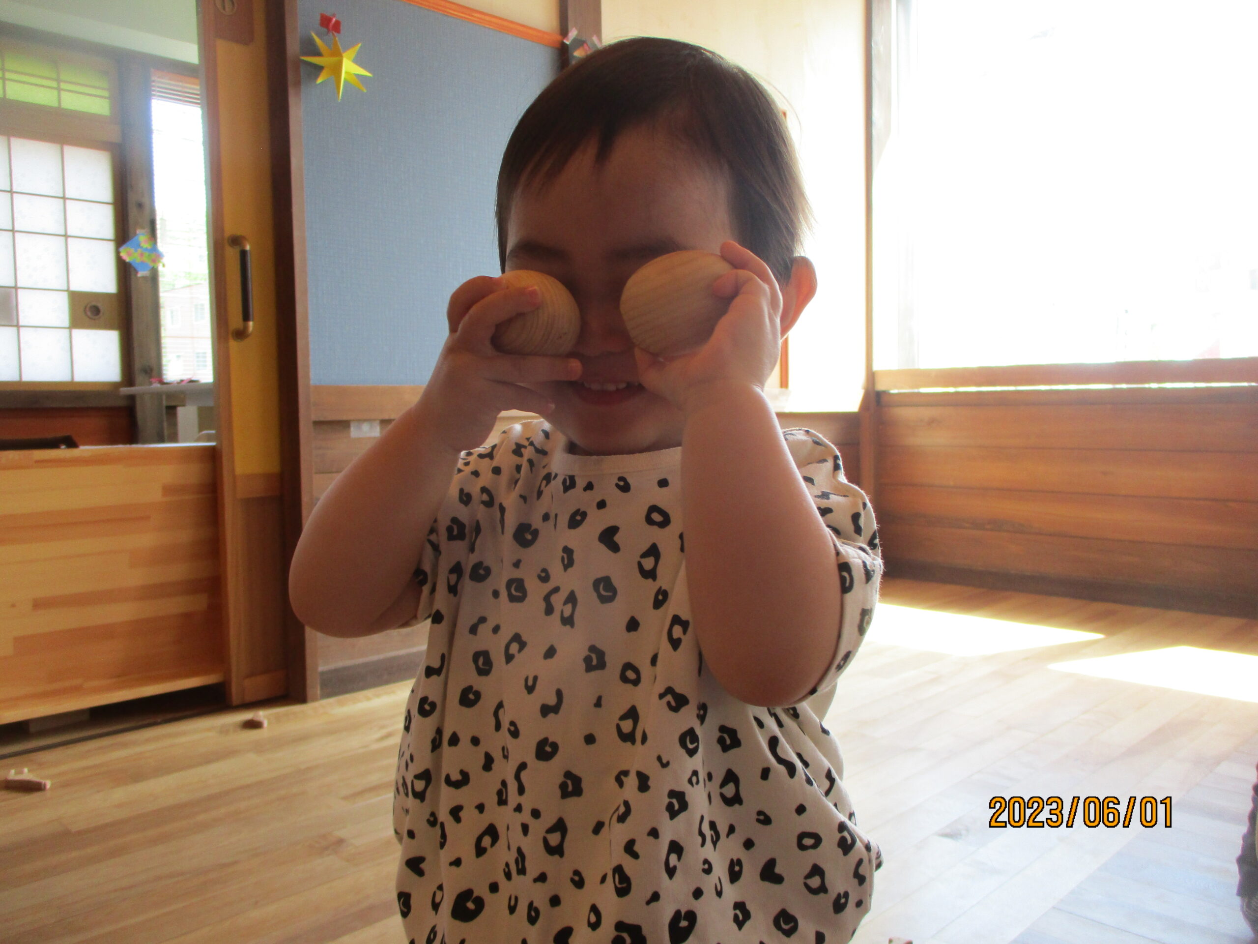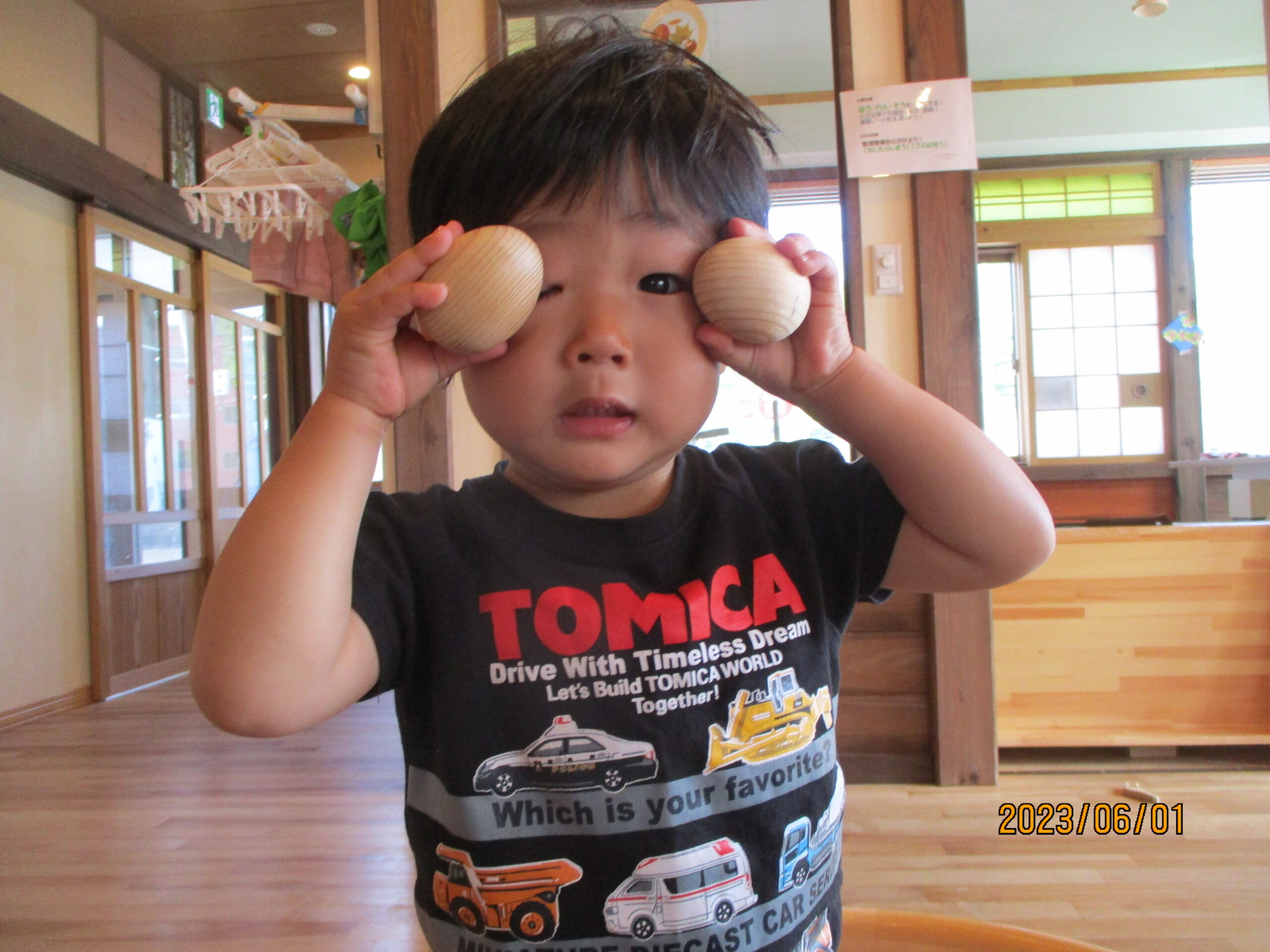 たまごを両手に持ちアンパンマンの真似をしたり・・・