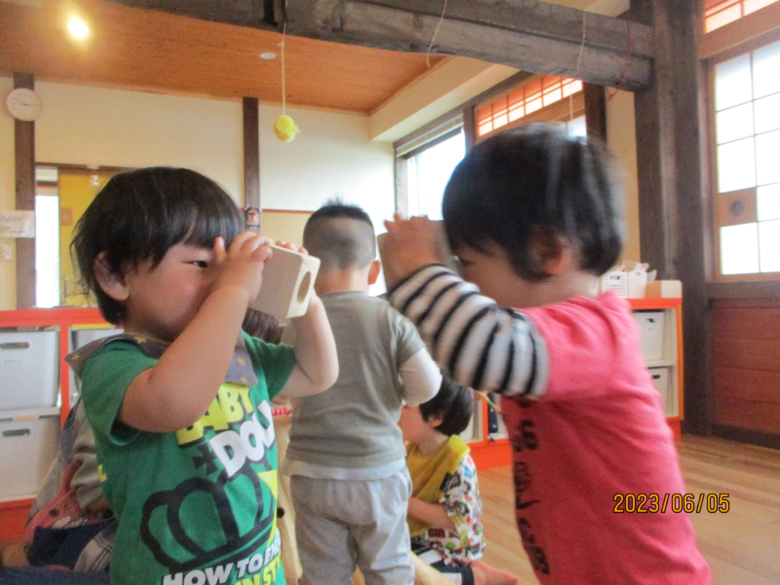 積み木の穴の中からお友達のことを覗いている姿も見られましたよ!