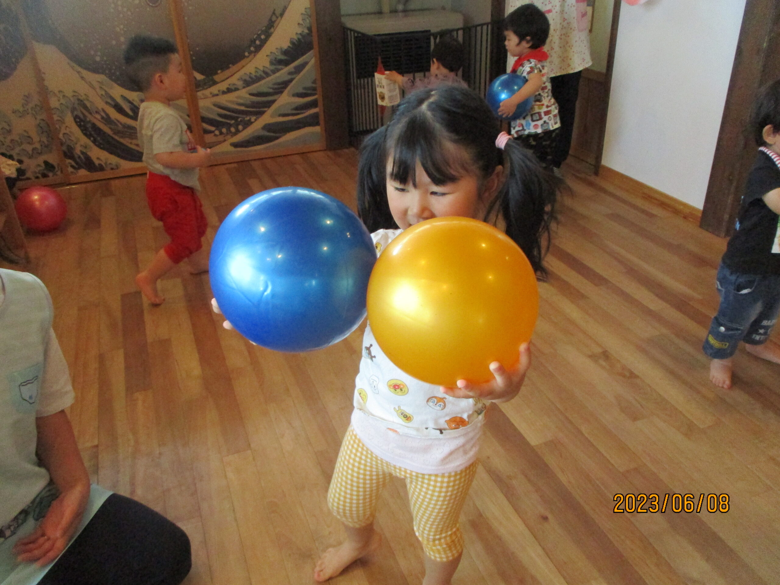 今日は、くり組くるみ組で様々な大きさのボールを出して遊びました。