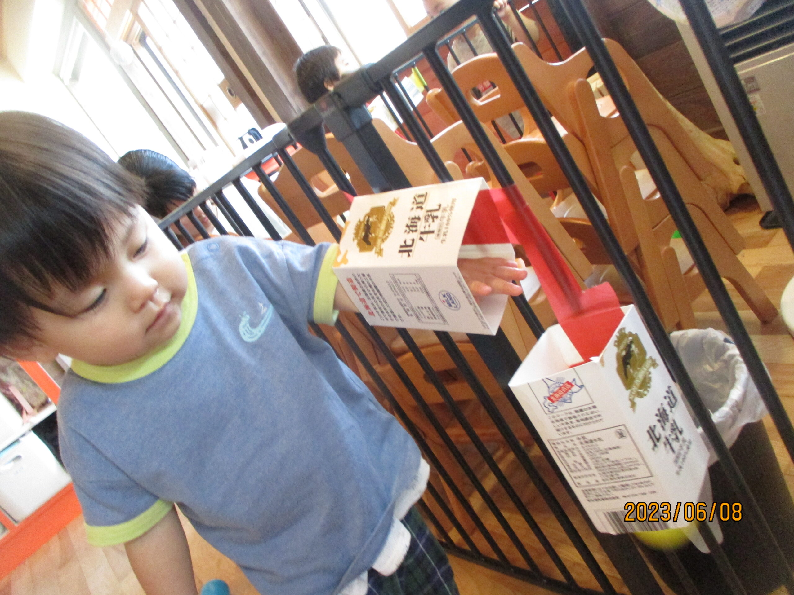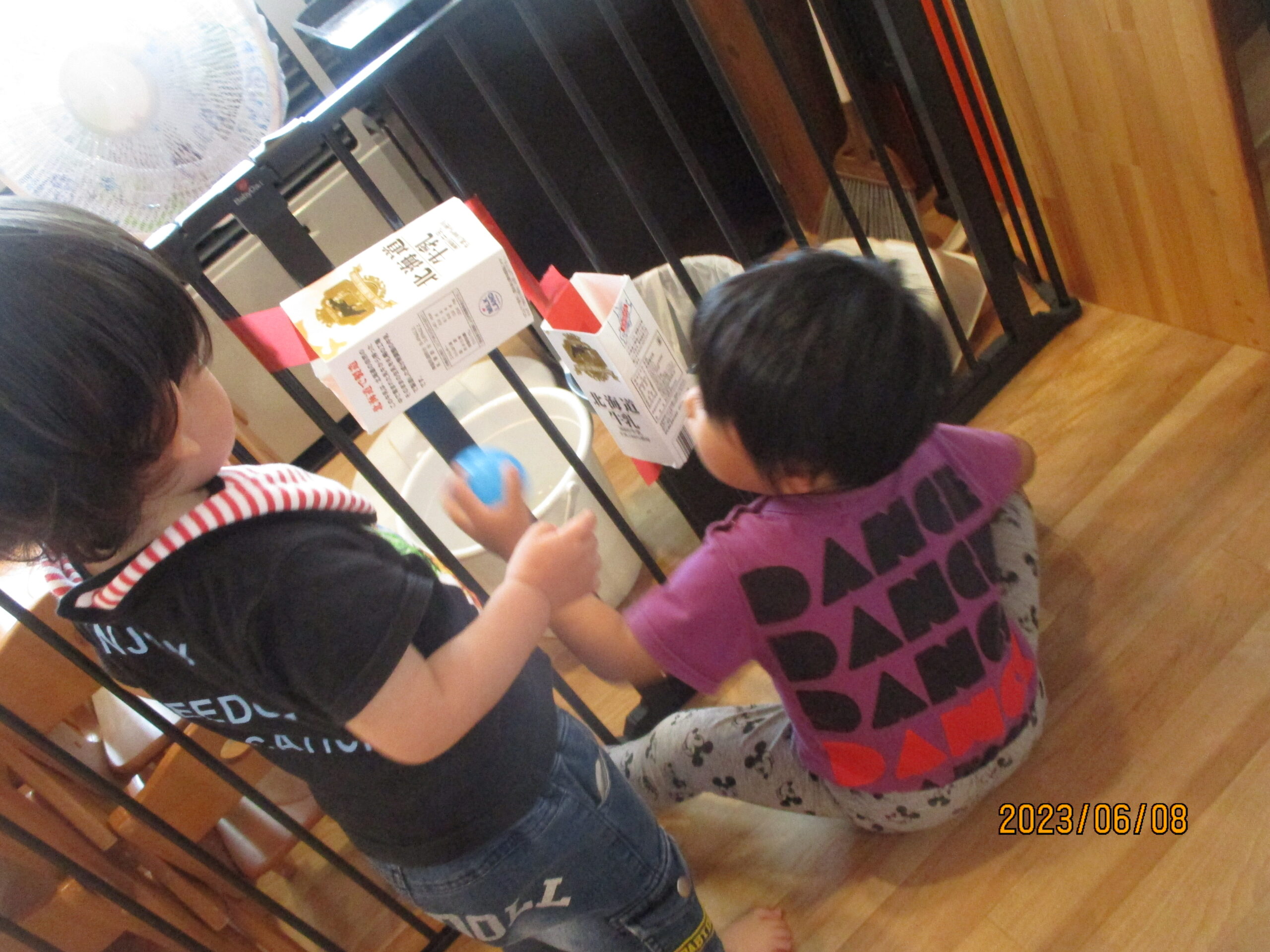 特に人気だったのは、牛乳パックで作った玉転がし。何度も繰り返し挑戦し転がるのを楽しんでいました。