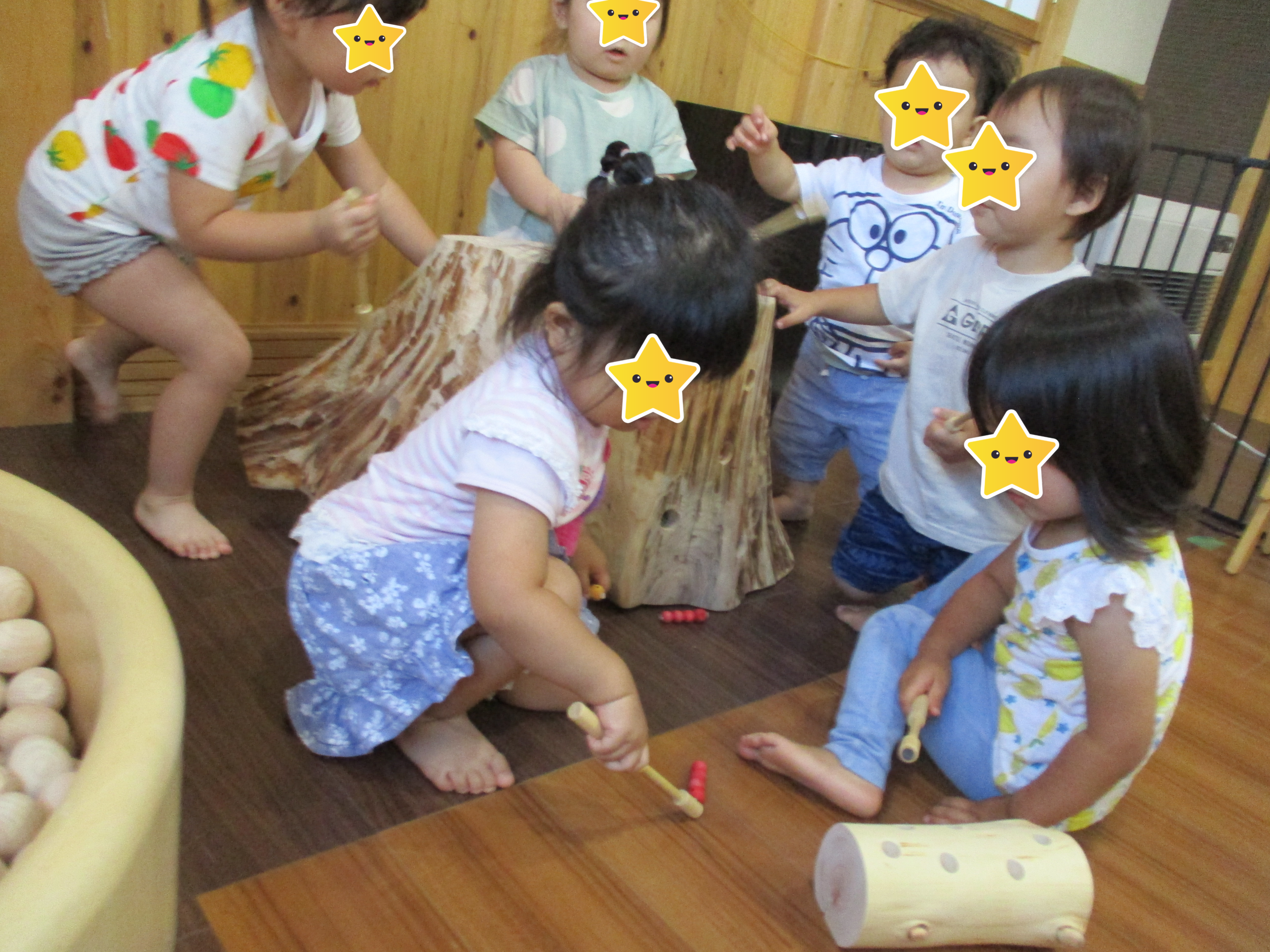 「木」を真ん中に置いた子育て・子育ち環境の整備をし、子どもをはじめとするすべての人たちが、木のぬくもりを感じながら、楽しく豊かに暮らしを送ることができるようにしていく取り組みのことです。木育こどもの家新川園でも2021年7月より、木のぬくもりの園舎の中で自然の恵みを取り入れた保育に取り組んでいる保育園と認められ、念願のウッドスタート宣言認定園としてスタートすることが出来ました。