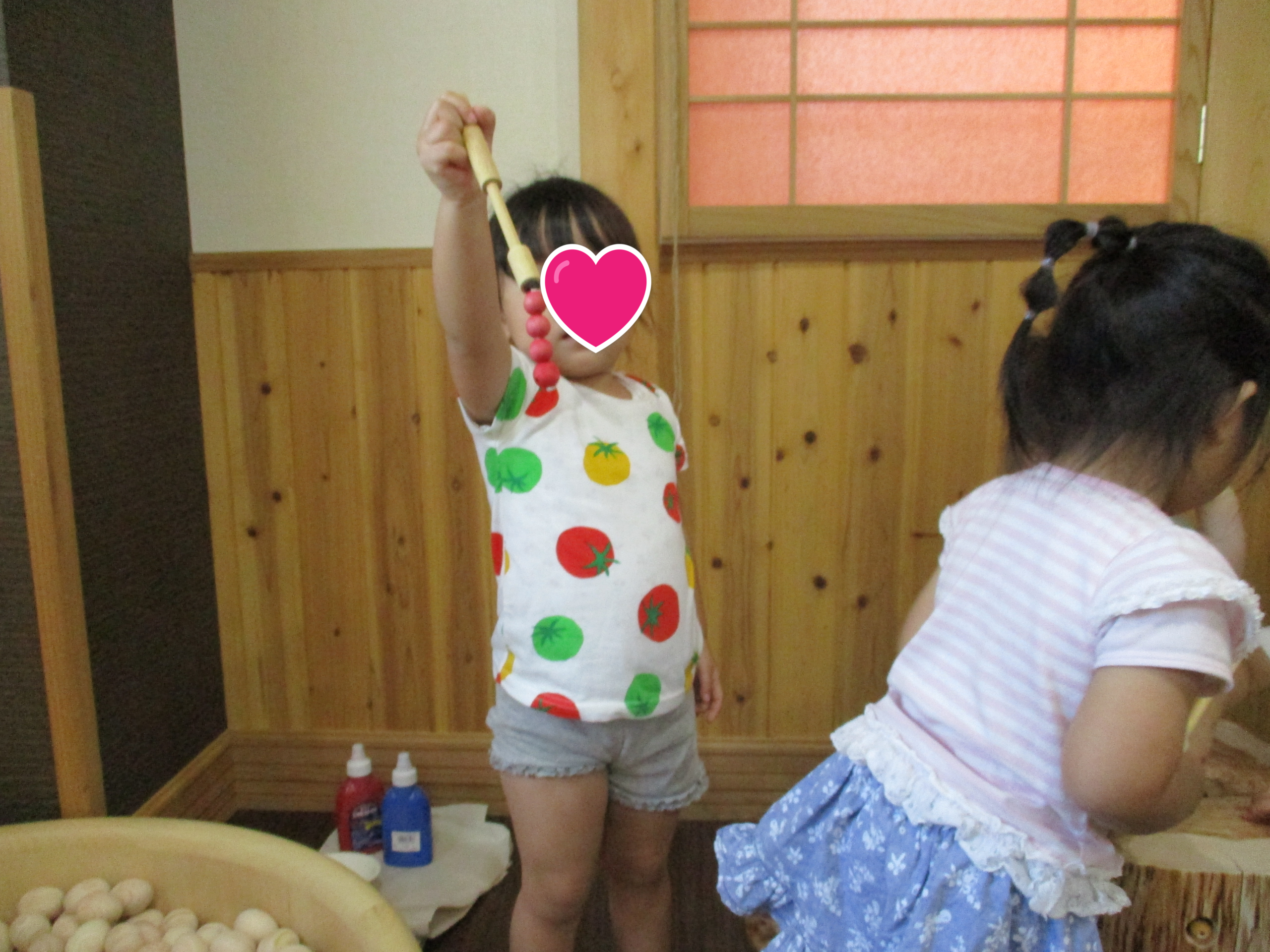 まずは、全部の穴に虫を入れて・・虫取り棒でヒョイ!最初は力加減が難しい子どもでも、だんだんとコツをつかみ「とれた~!!」と何回も教えてくれました!