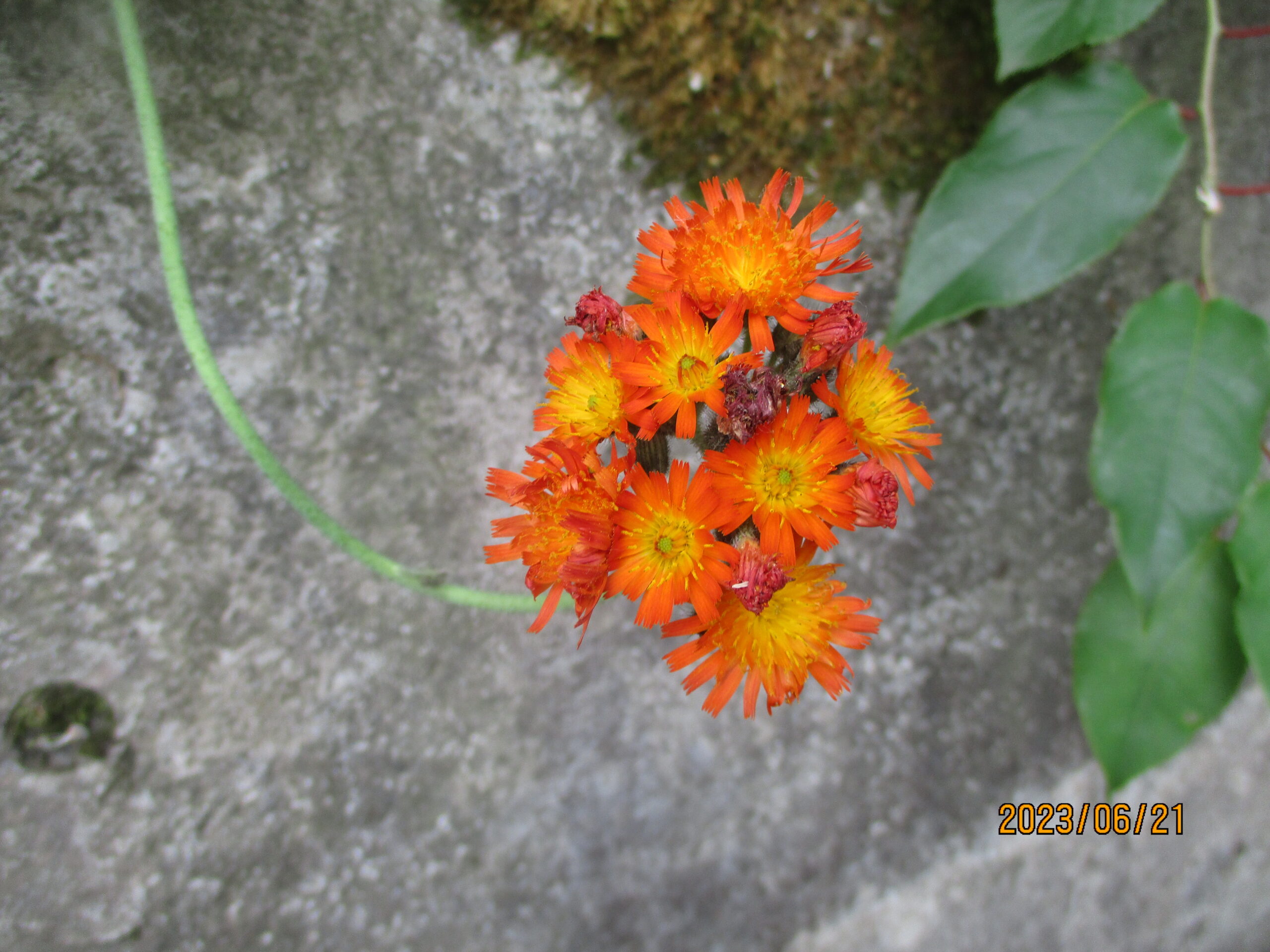 黄色や桃色の花、赤いコウリンタンポポ、そしてさくらの実も