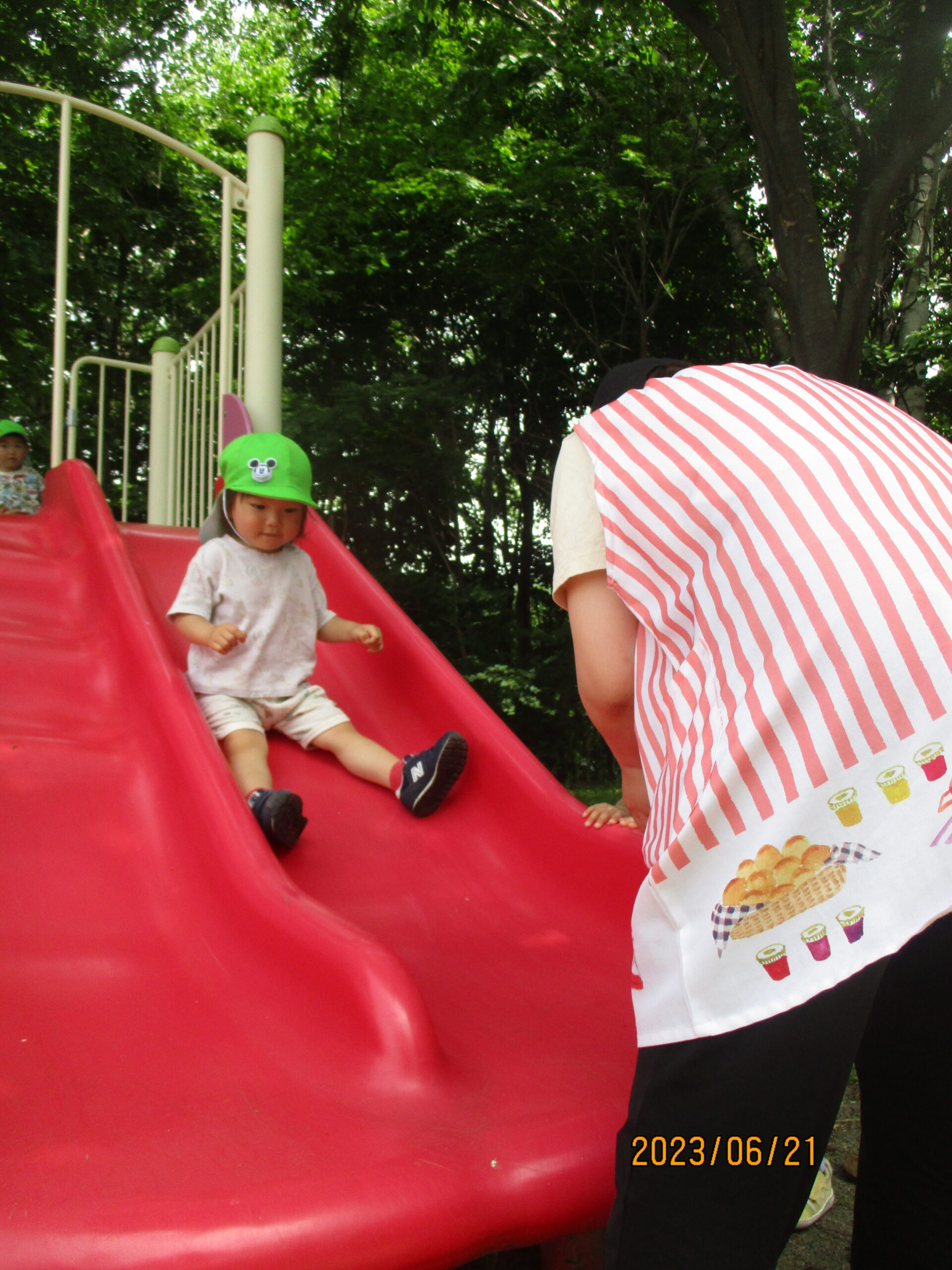 滑り台や、ジャンポリンという遊具で遊びました。