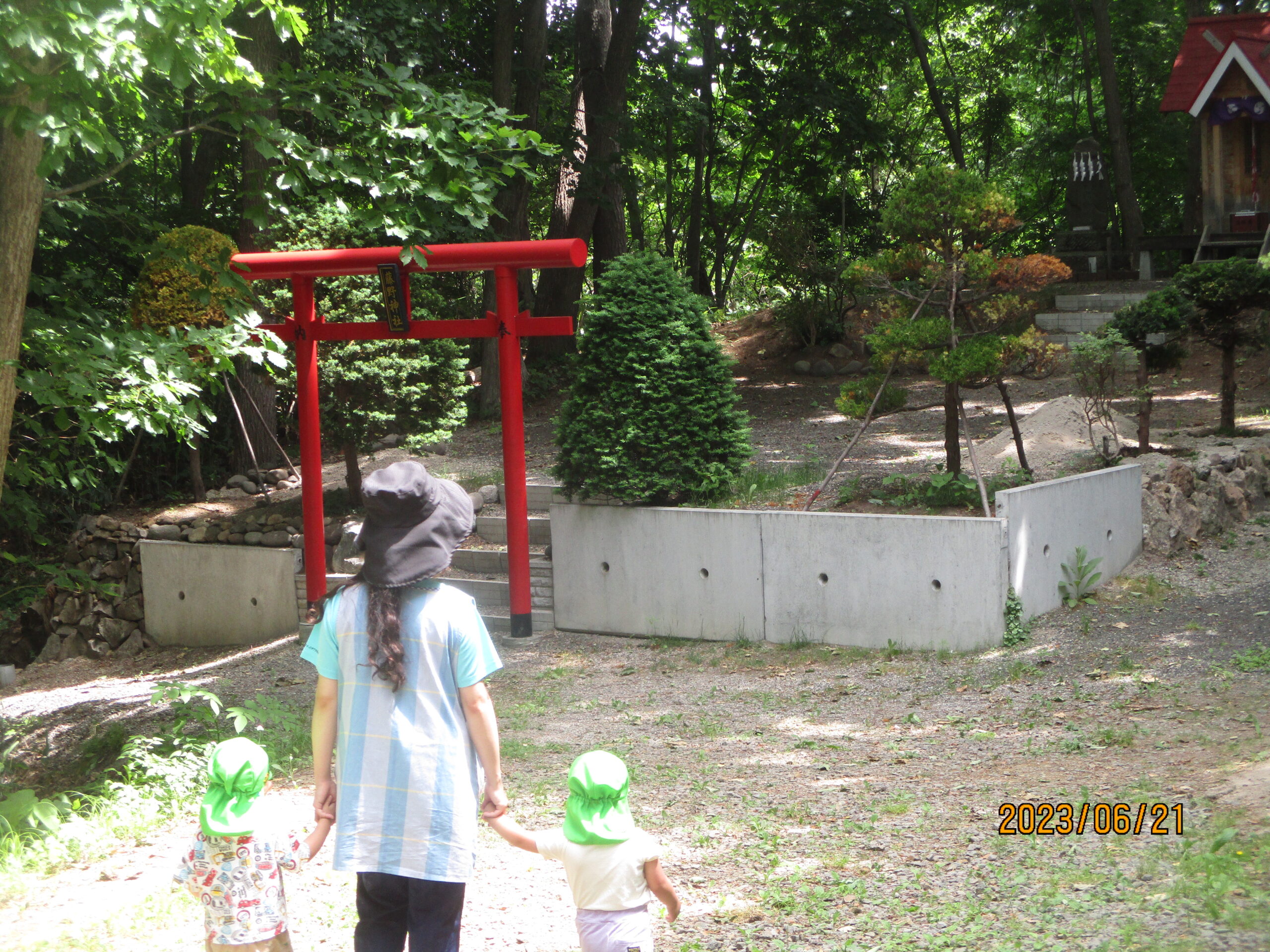 子どもの一人が、「鳥居、みてきた!」と報告する姿も