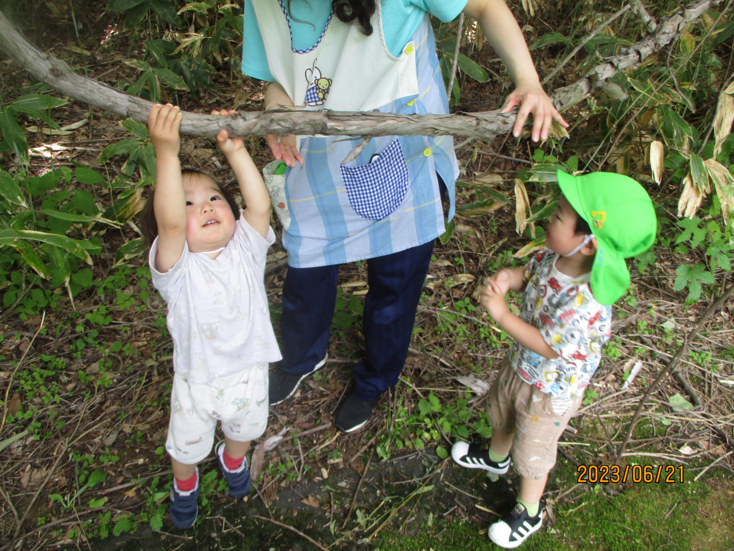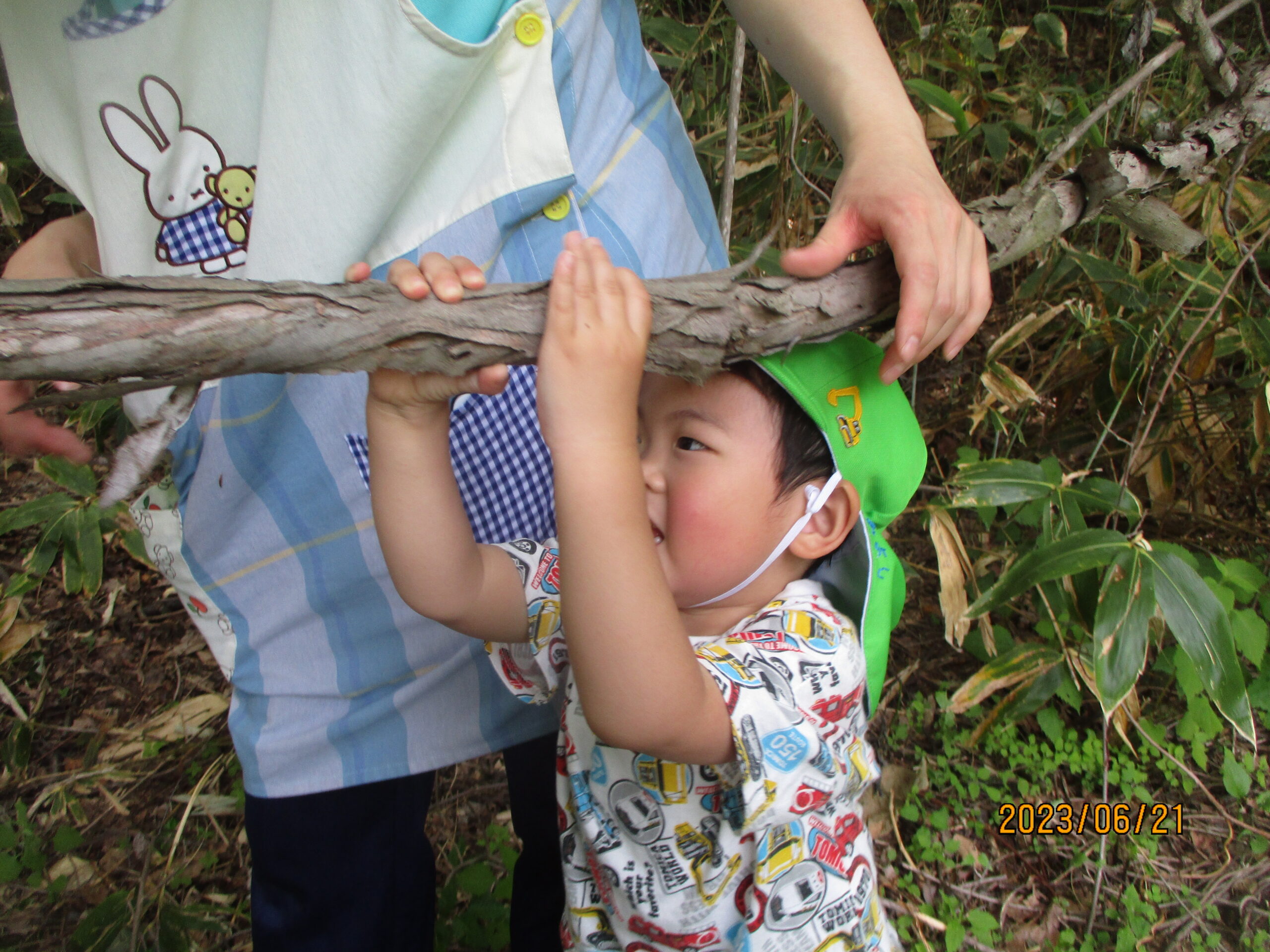 下からも手を伸ばし、木に触れてみました。