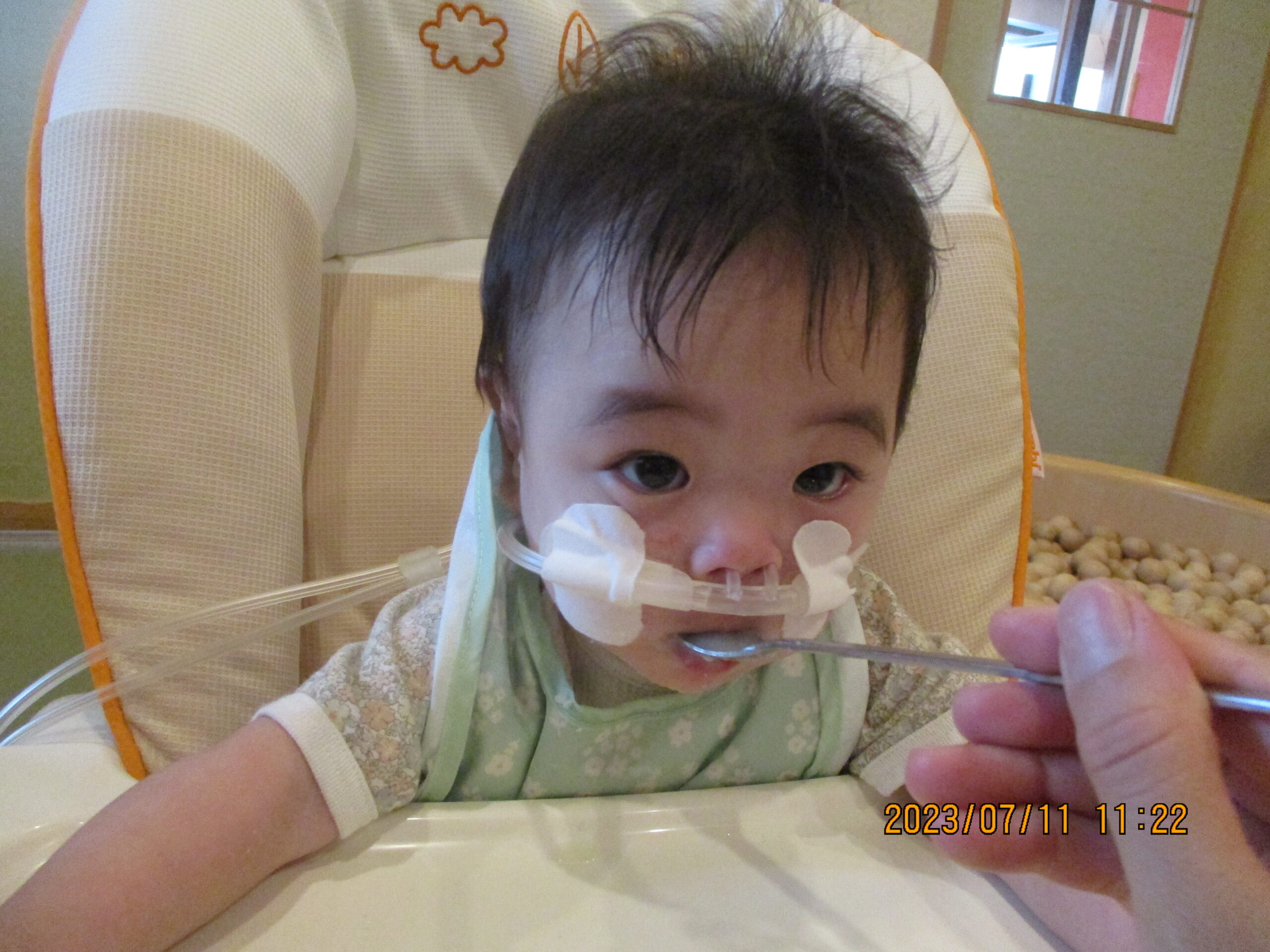 寝起きにもりもりとご飯を食べています。 寝て起きて、ご飯もたくさん食べて…。元気いっぱいの子ども達です!