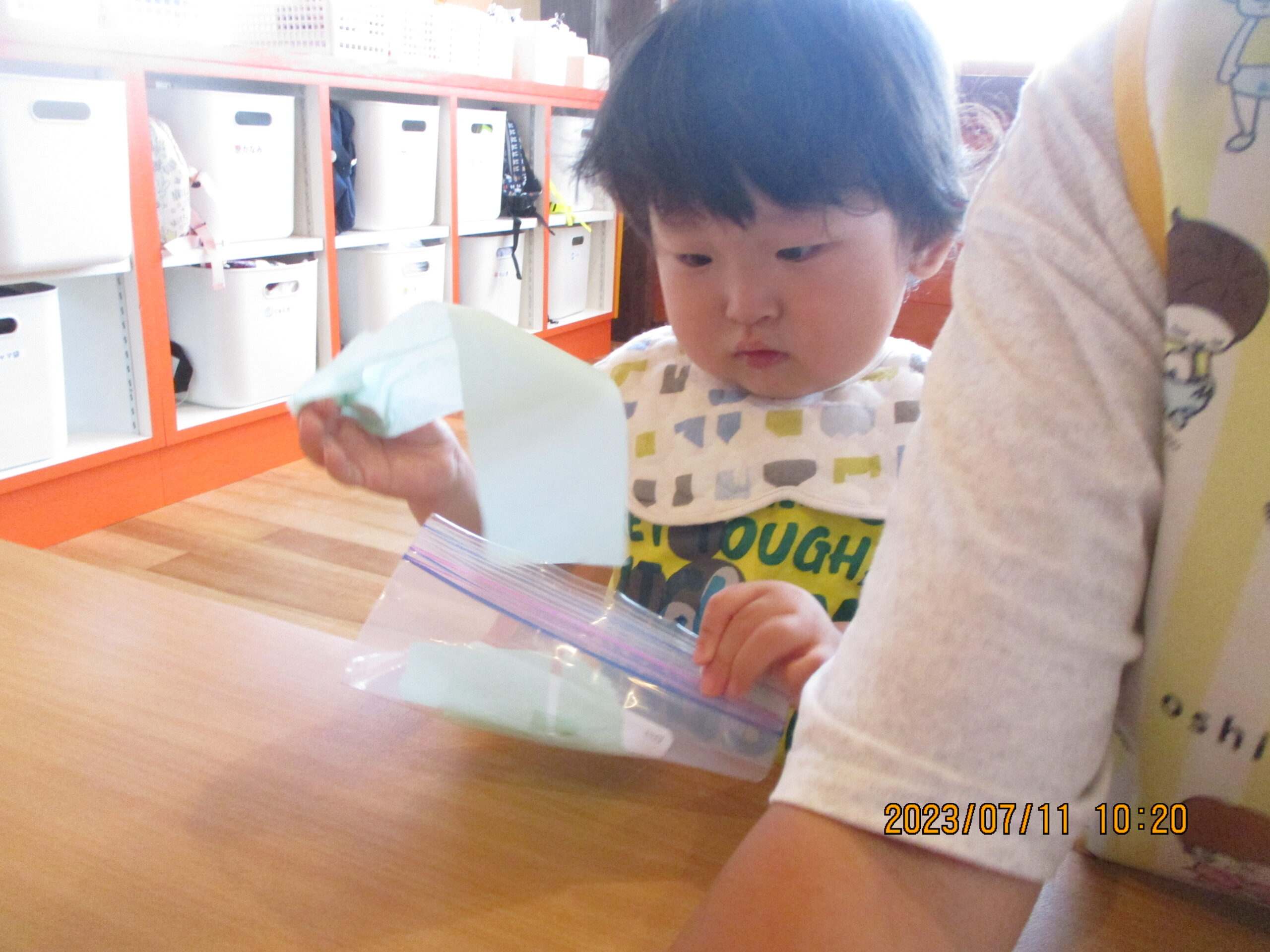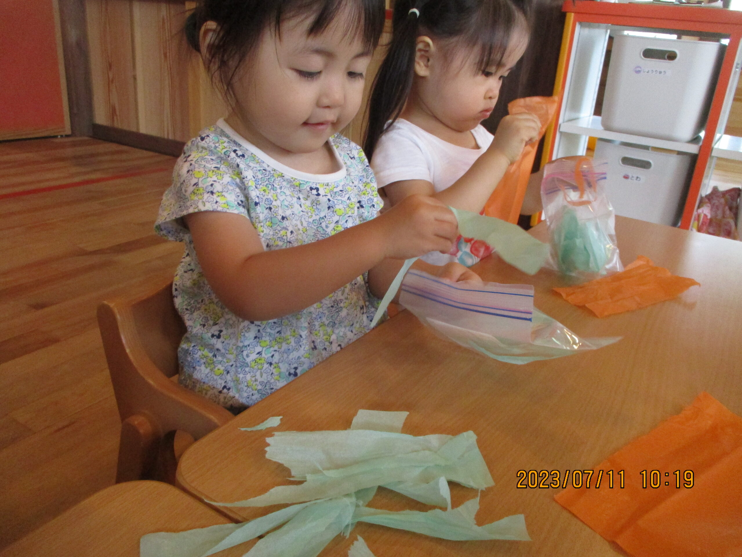 早速上手にビリビリちぎっていました。とっても真剣です。