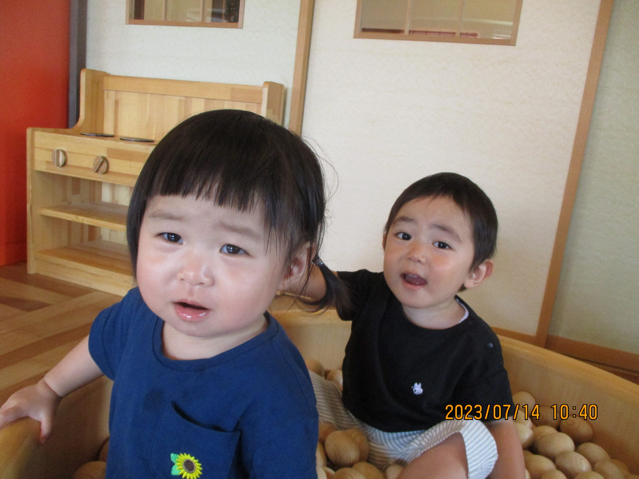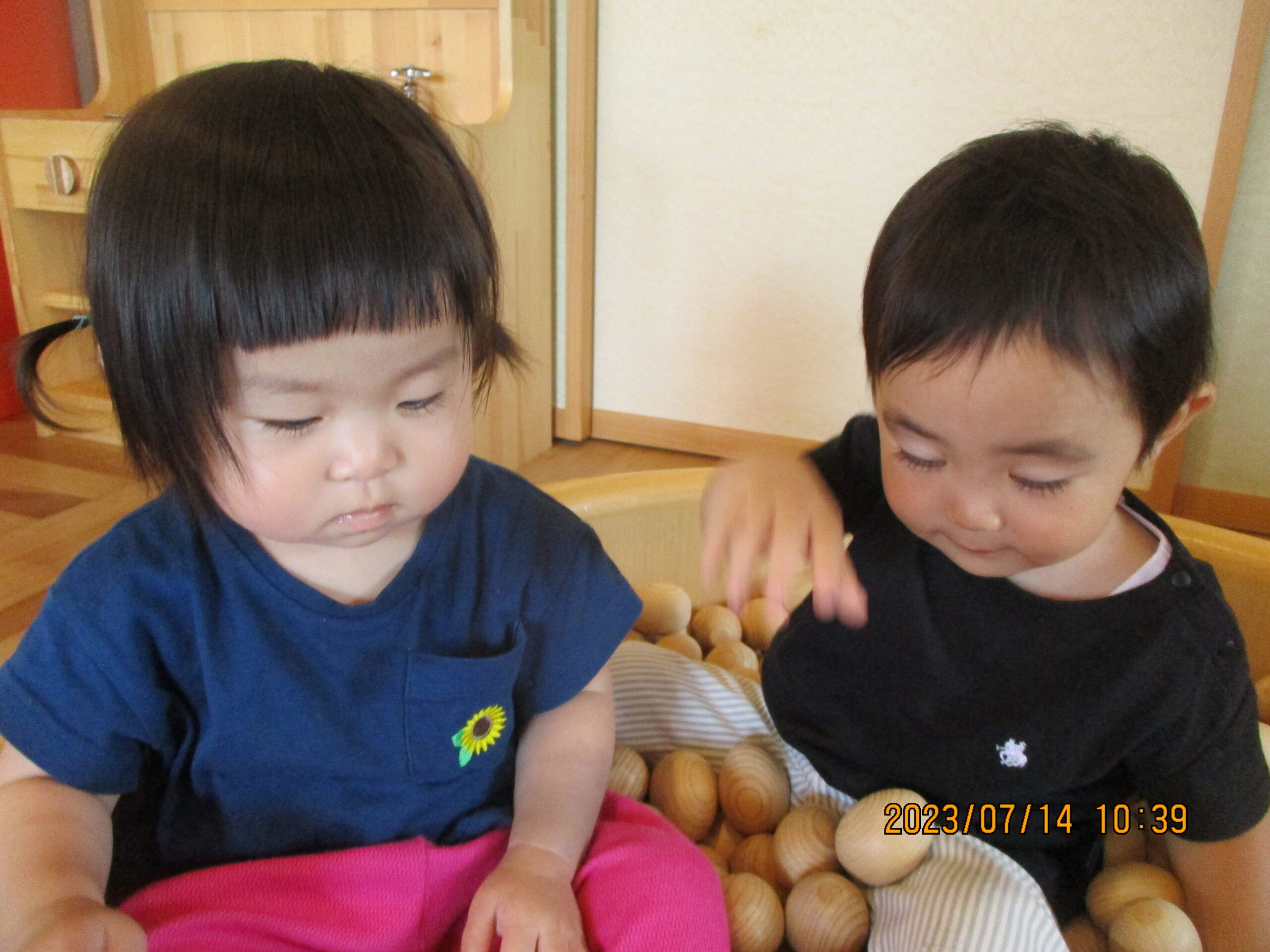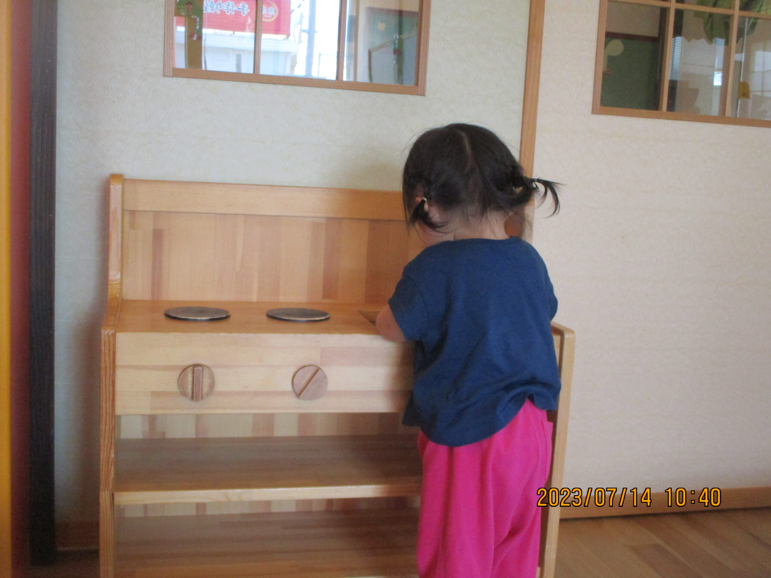 シールを貼った後はたまごプールで遊んだり、キッチン台に立ち料理をしたりと遊んでいましたよ。