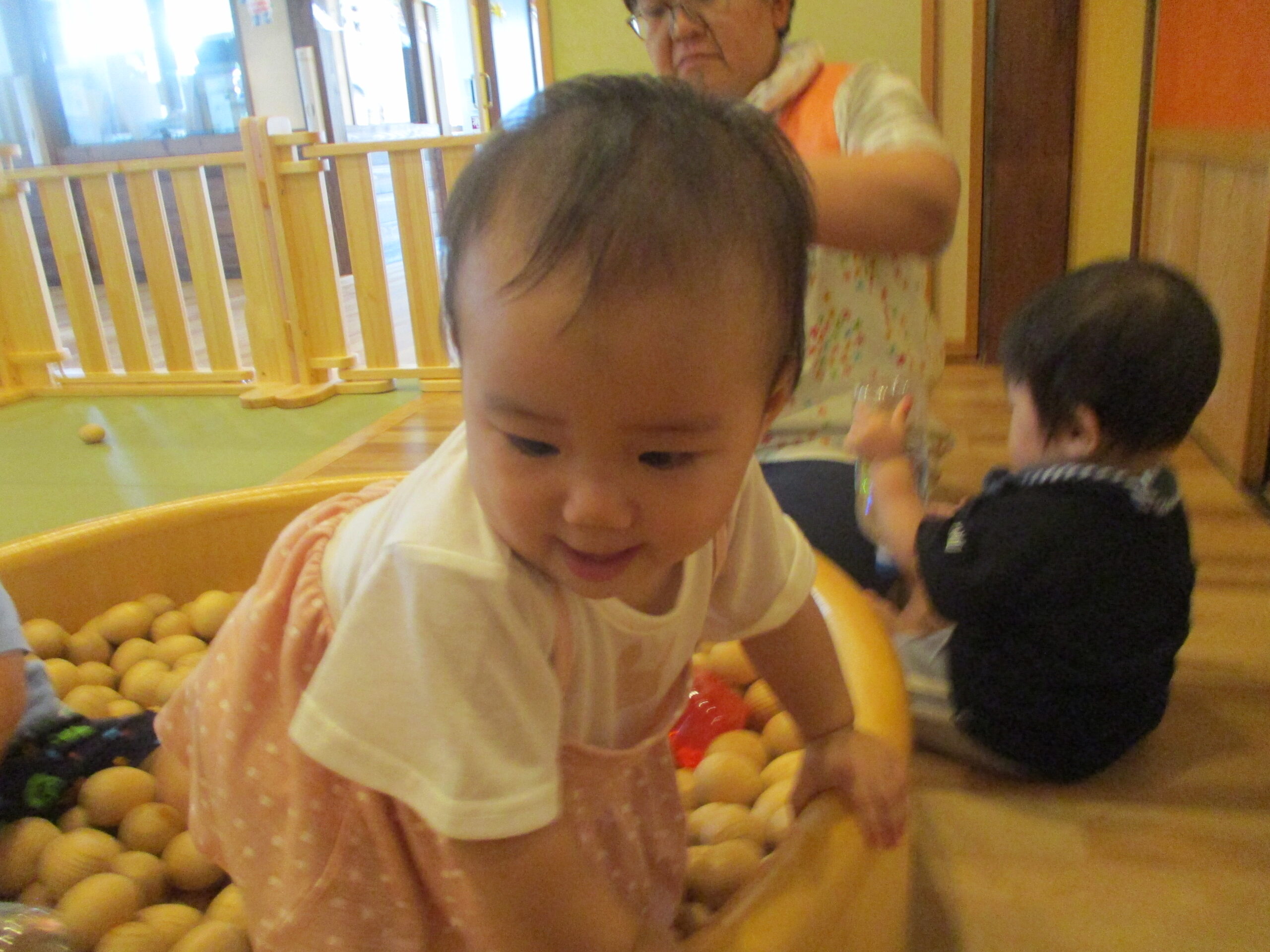 たまごプールの中にも、ペットボトルを入れてみました。