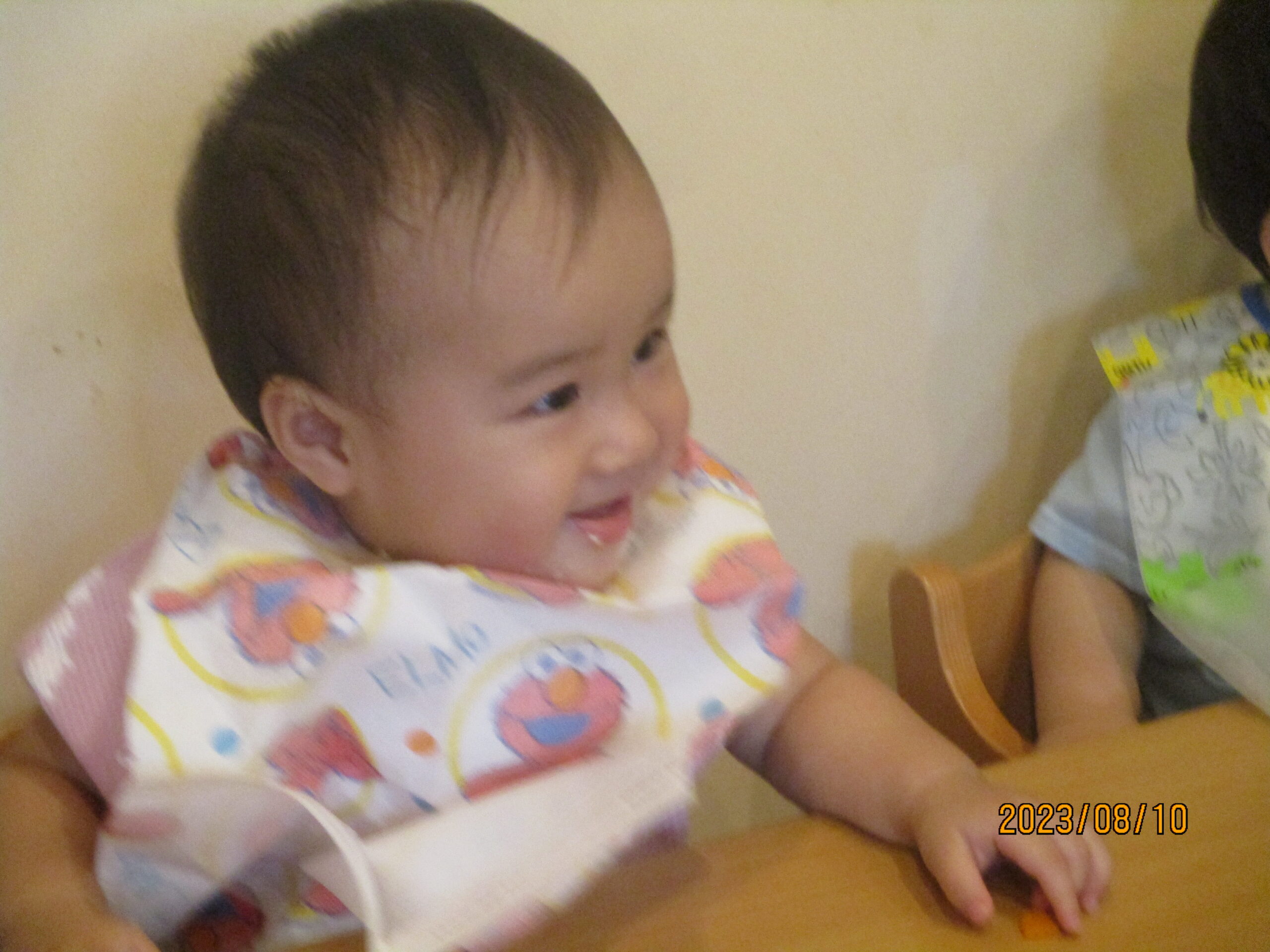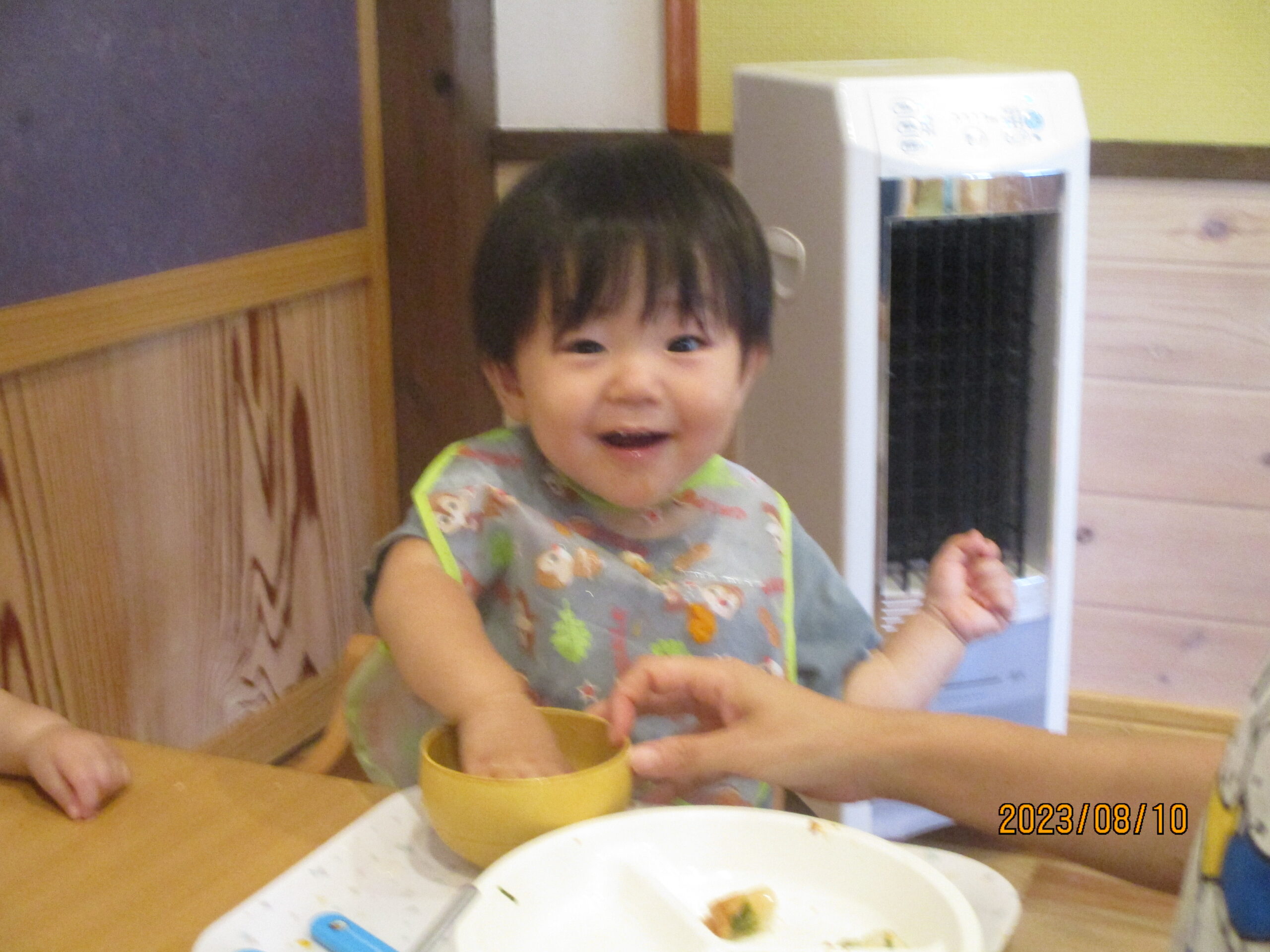 ご飯が運ばれると、ニコニコといい表情を見せてくれます!子ども達の大好きな時間の一つです。