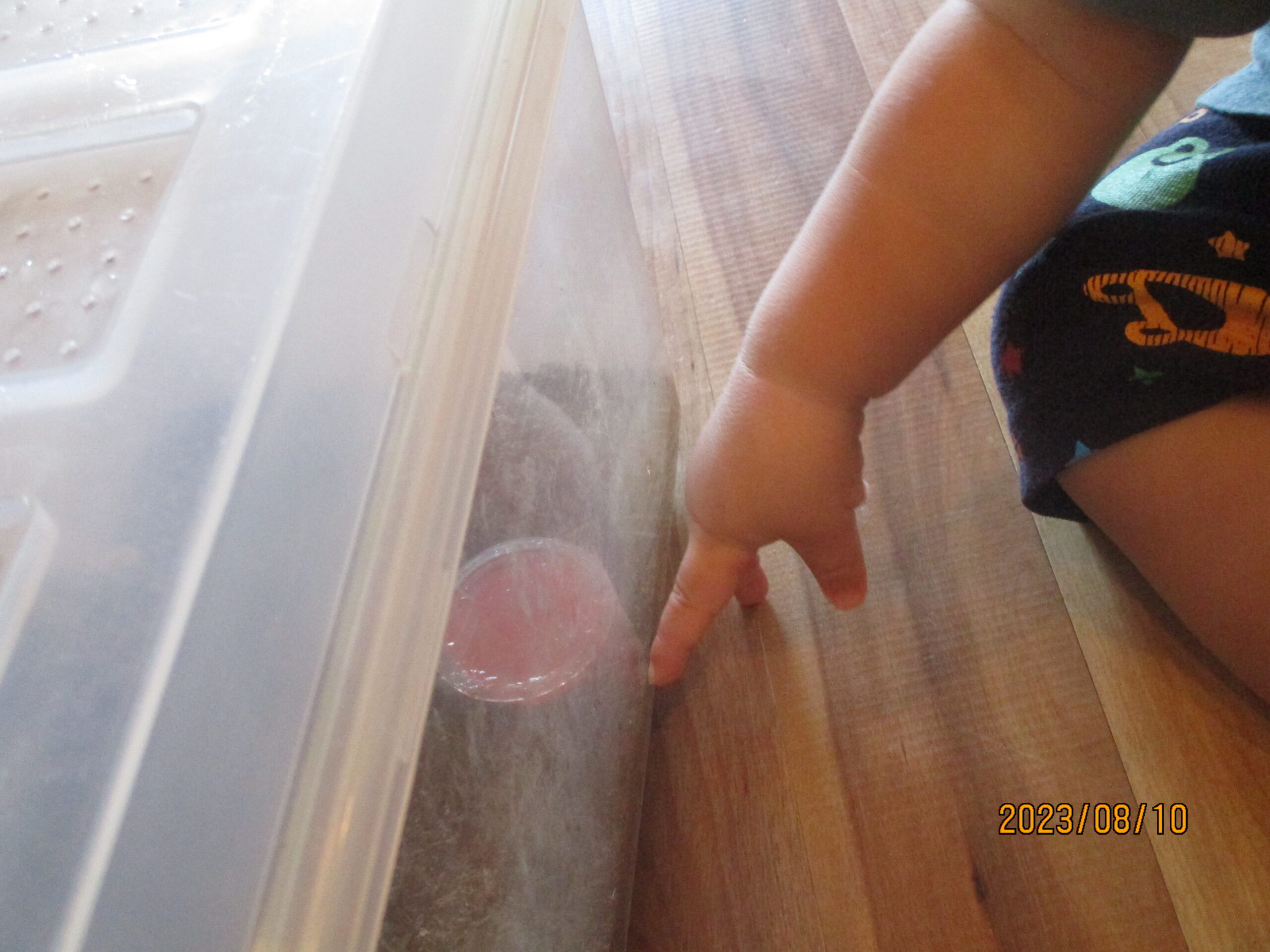 いつの間にか、こんなに床に近づいてバッタやクワガタの観察をしていました。