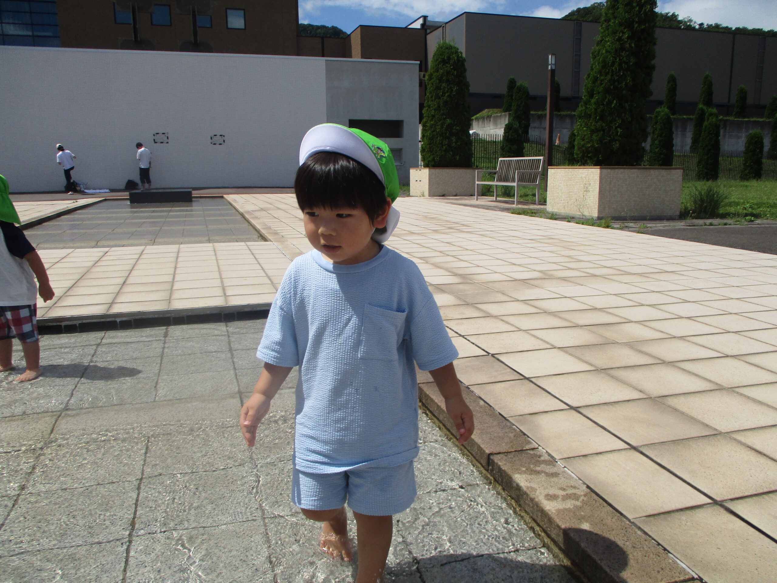 外では水遊び。暑かったので気持ち良かったです。