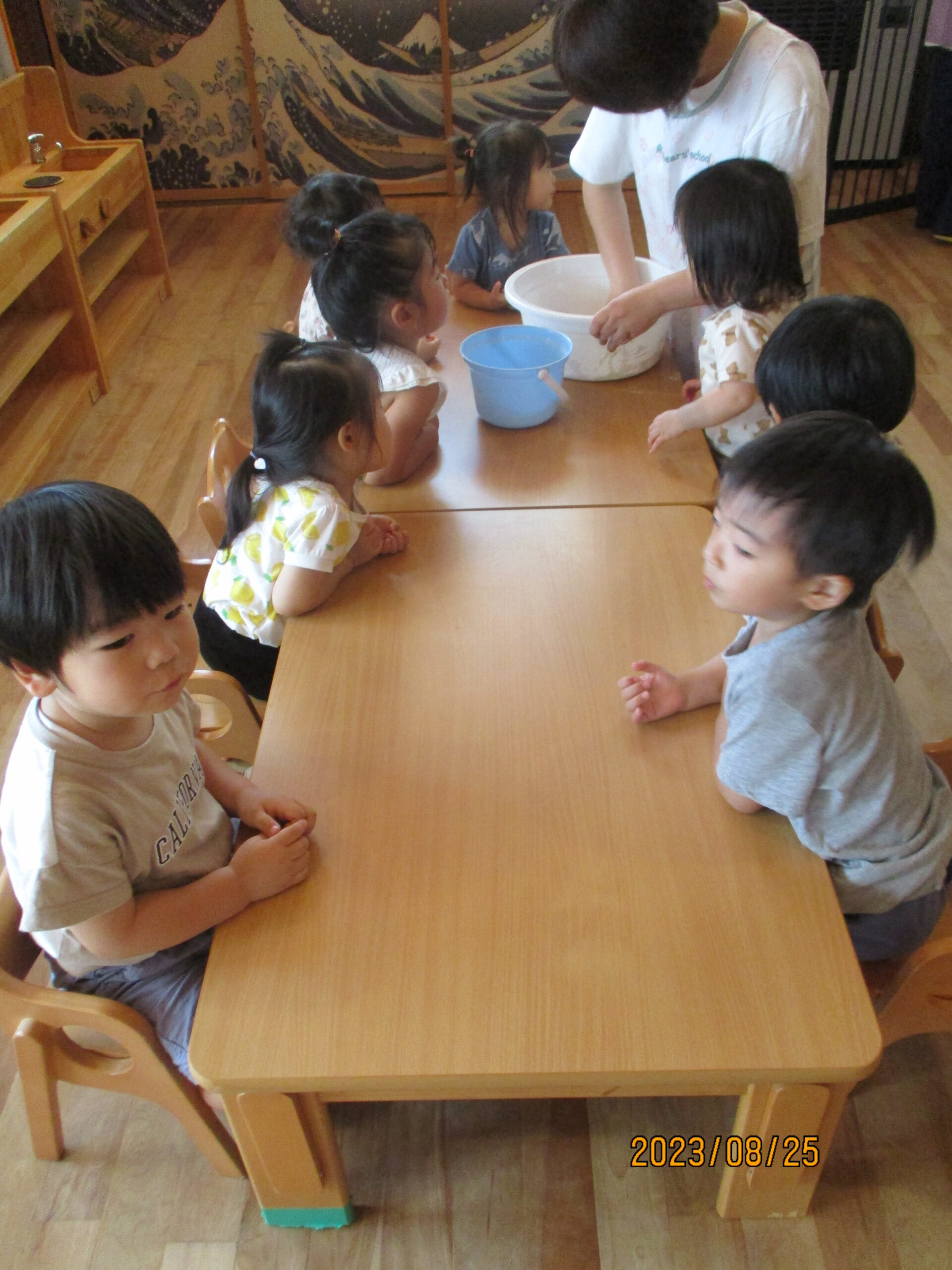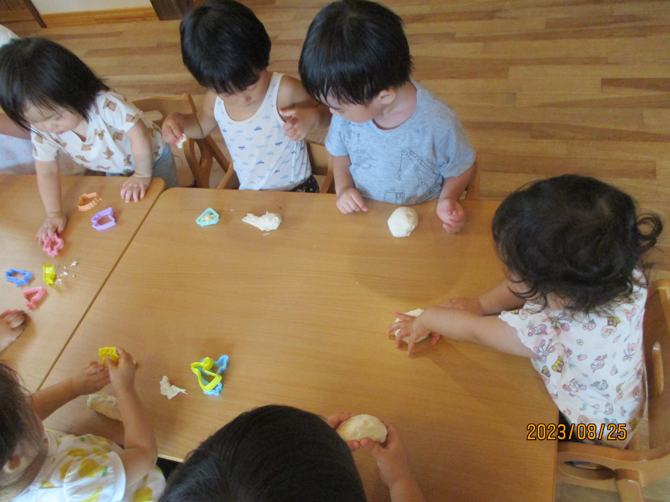 今日は久しぶりに小麦粉粘土をしました。子ども達は、小麦粉粘土をしたくてウズウズしています。