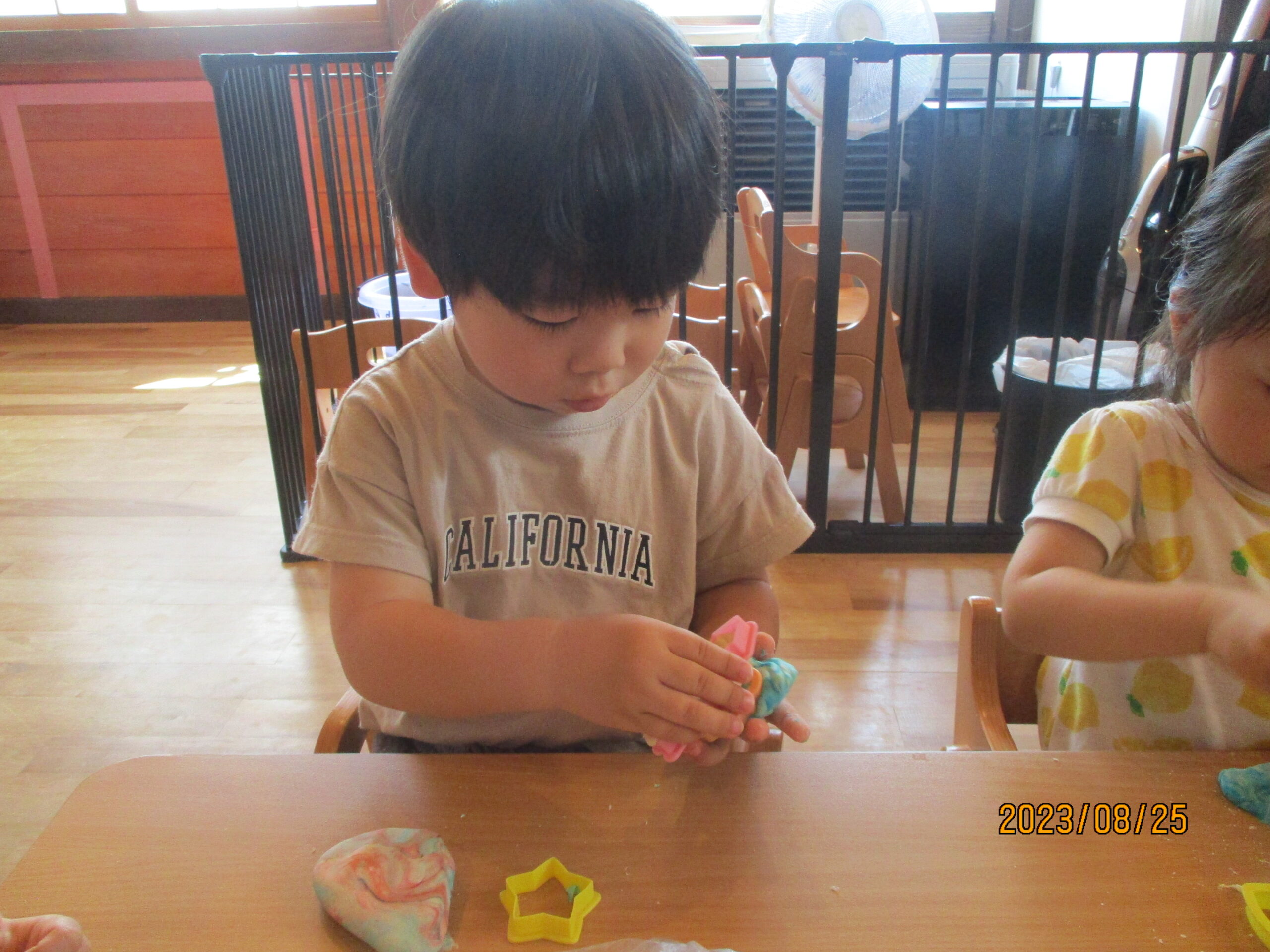 粘土が渡されると、感触を確かめながら丸めたり、星や馬などの型を使って様々な形を作ったりして楽しく遊んでいましたよ。
