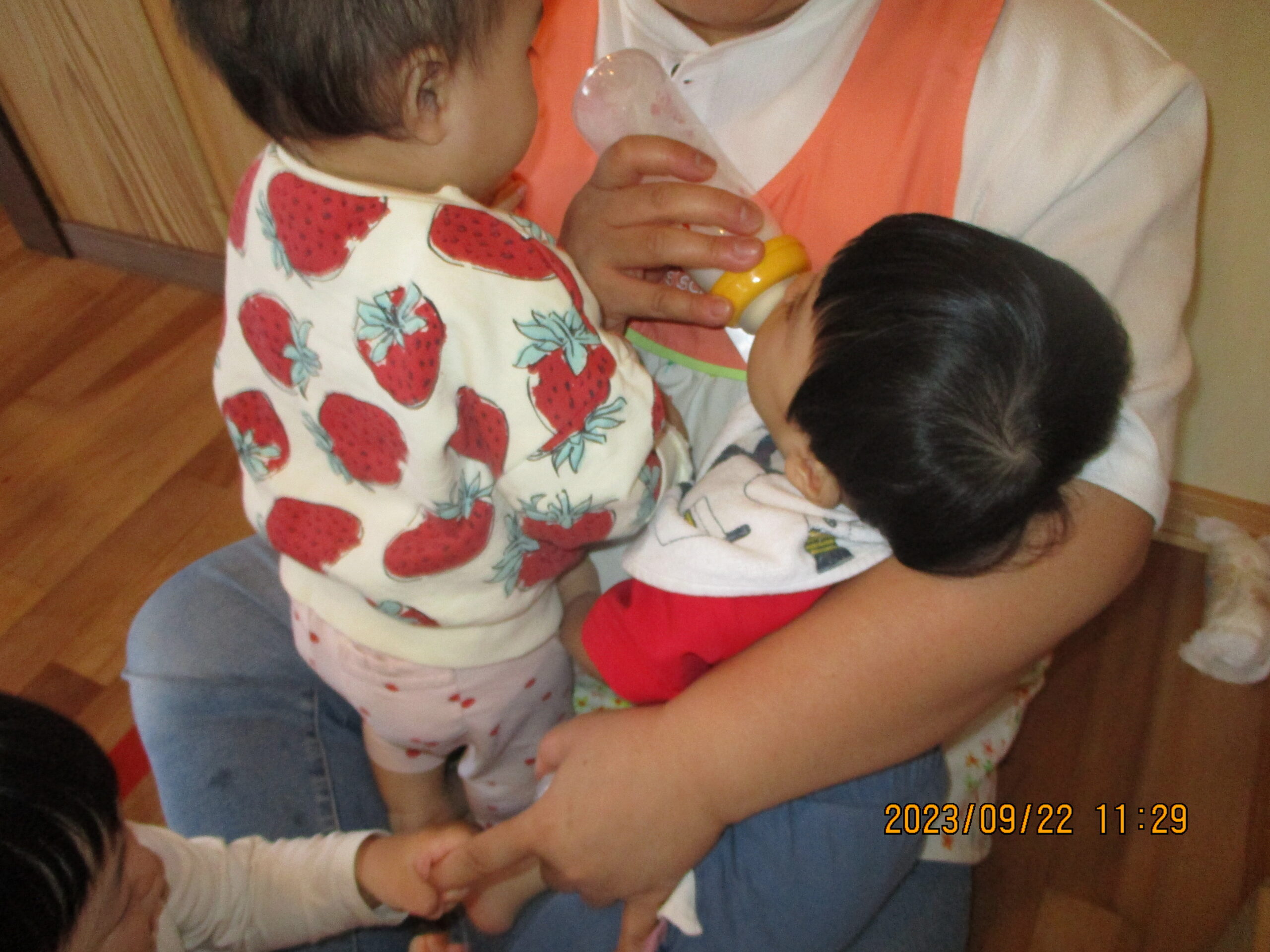 戻ってきてからのミルクタイムです。とても近くから見守ってくれています…。