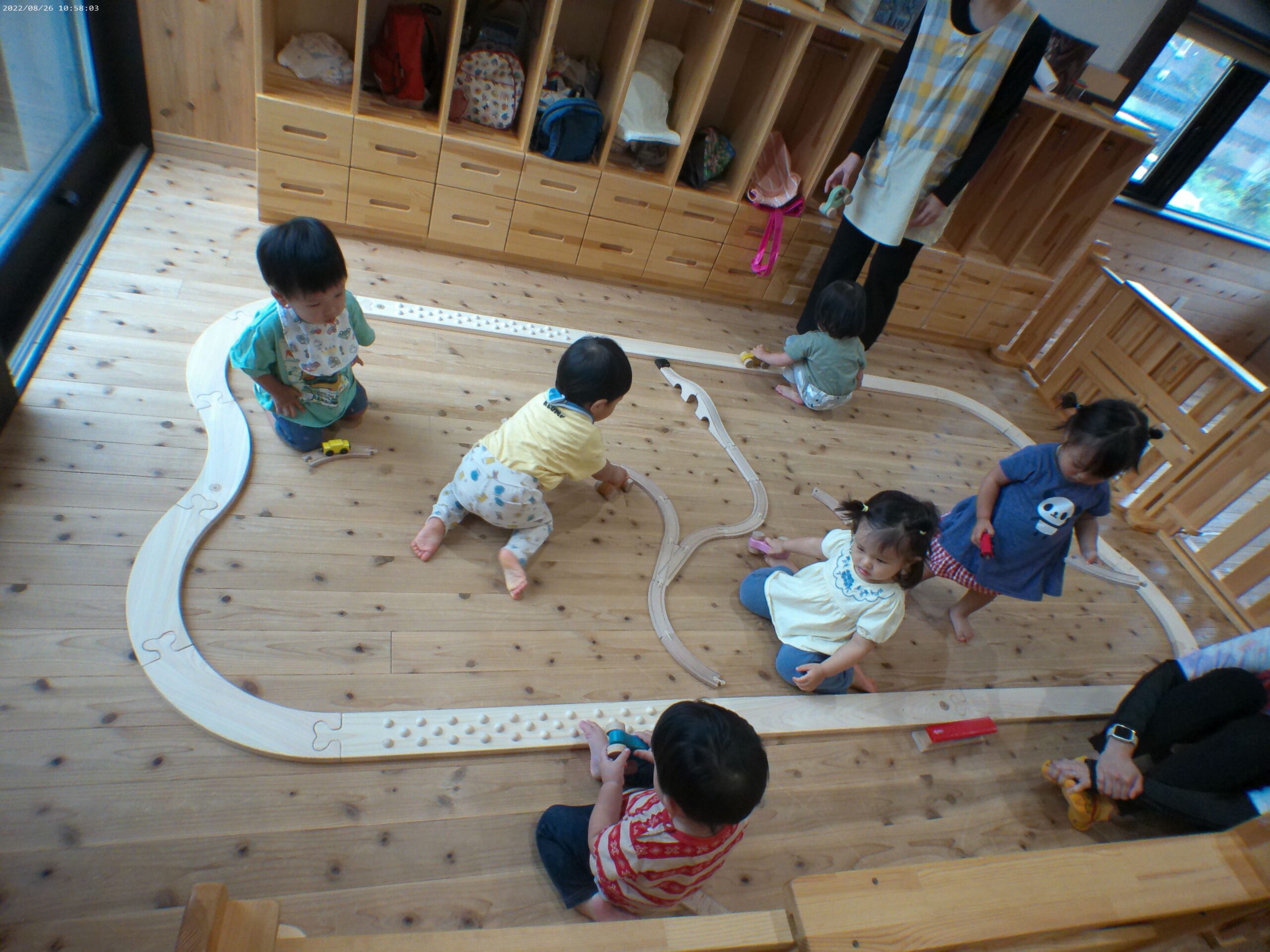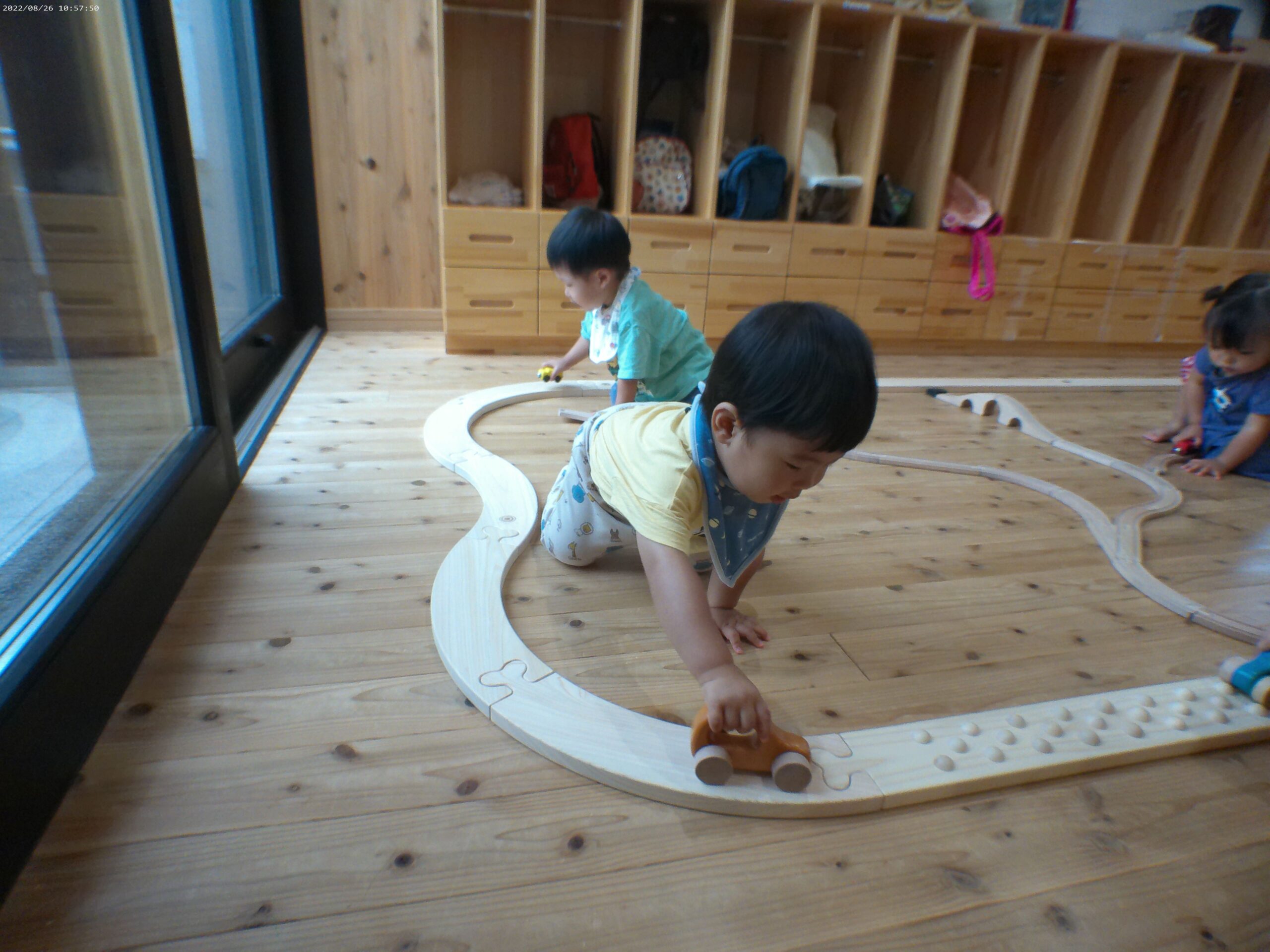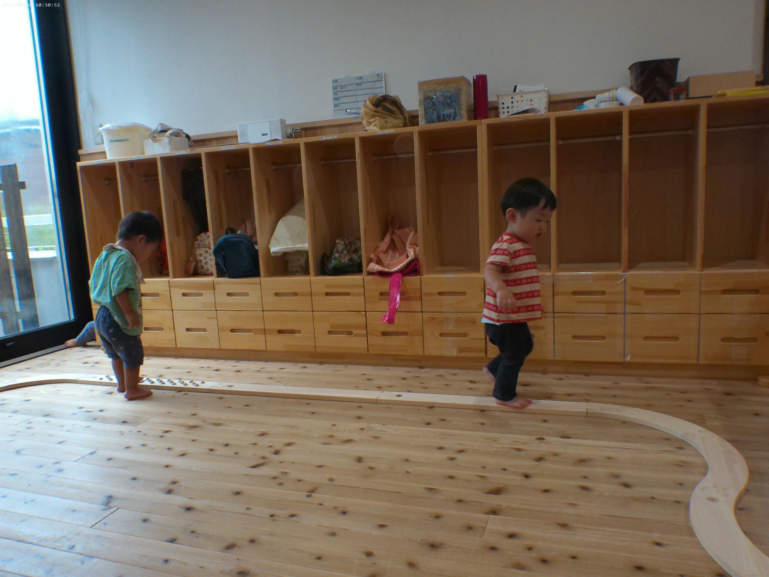 平均台としての楽しさから道路や線路に見立て遊びへと変化しました!