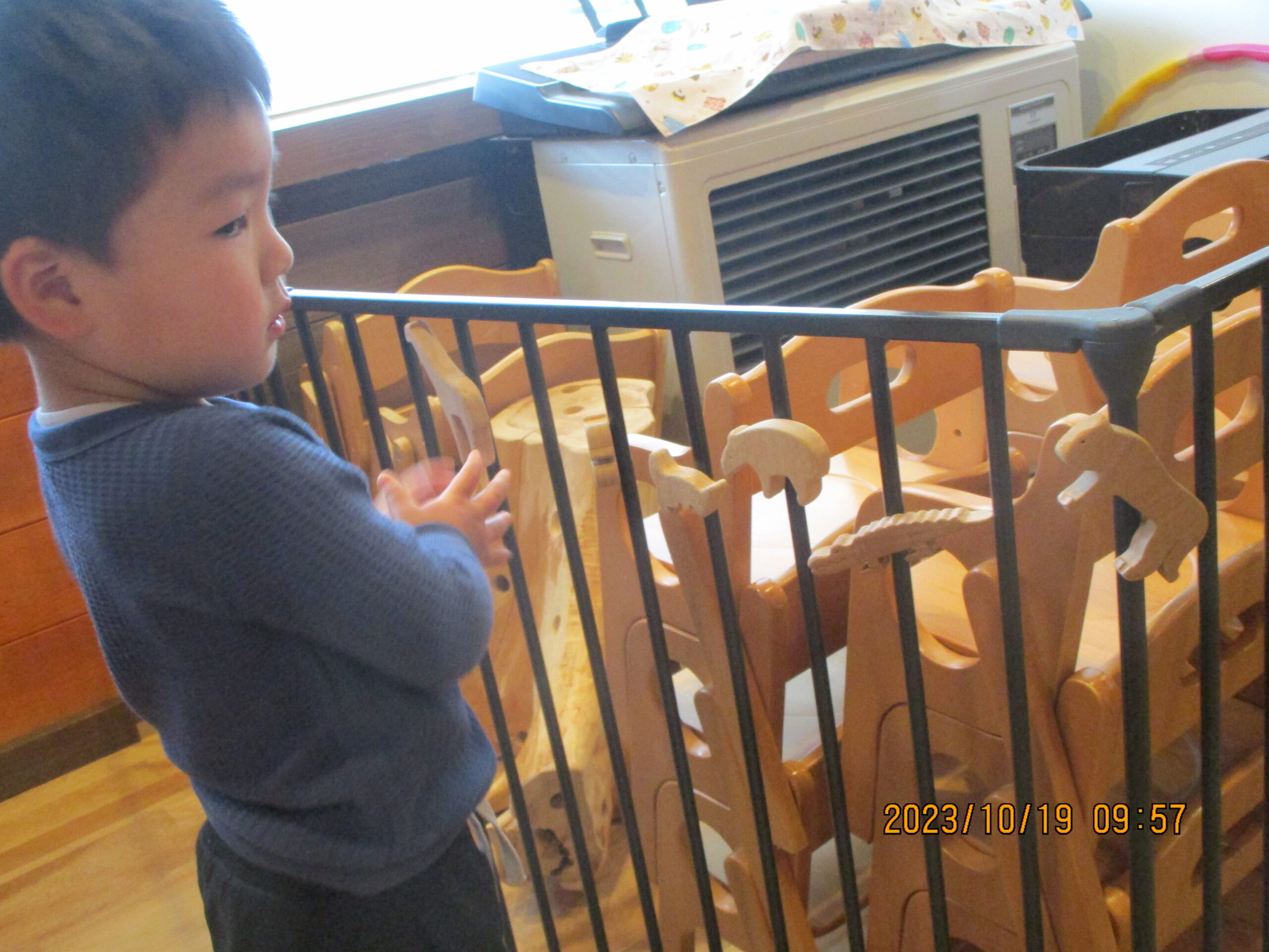動物磁石を柵につけて遊んでいる姿も見られましたよ。