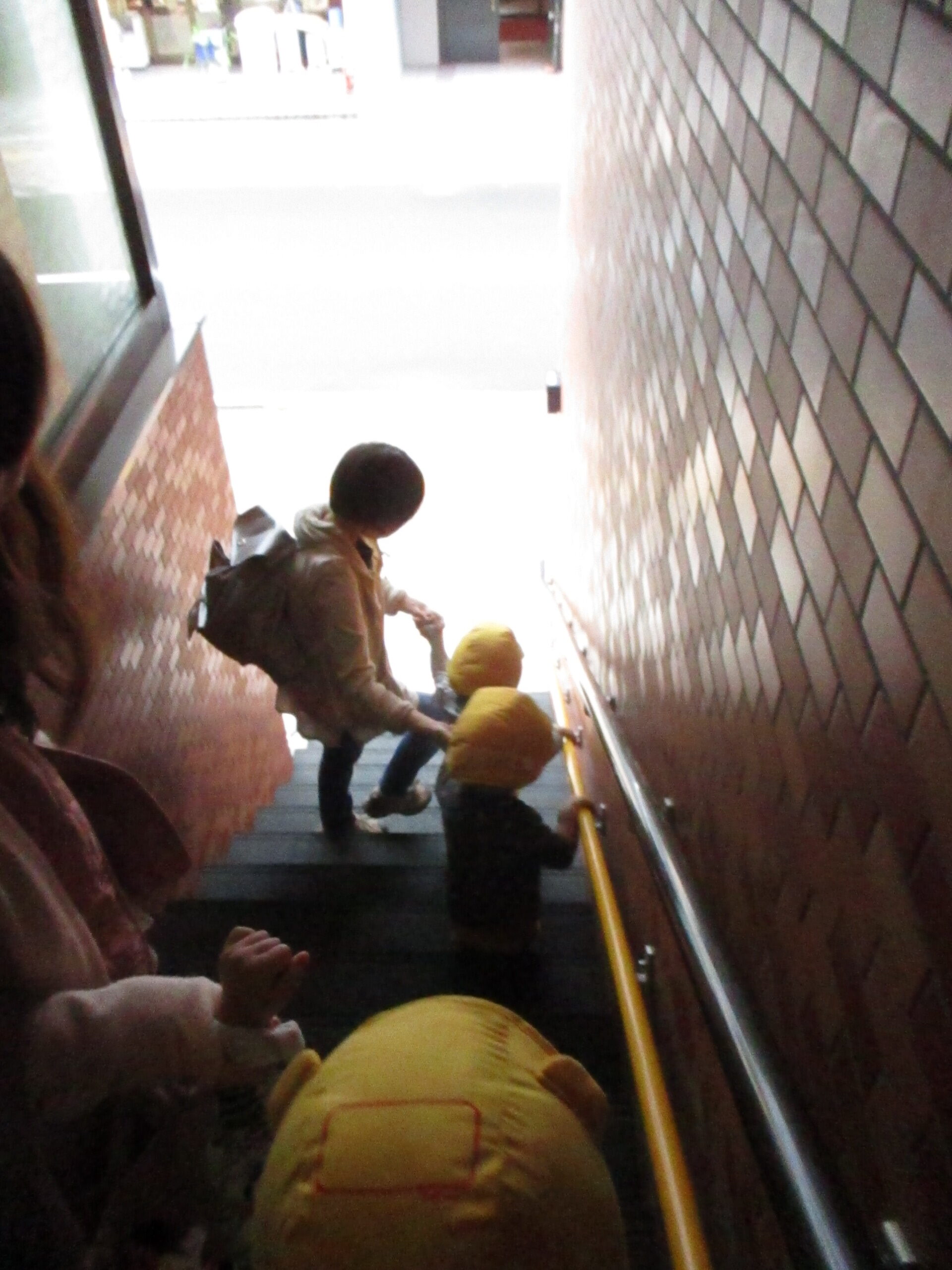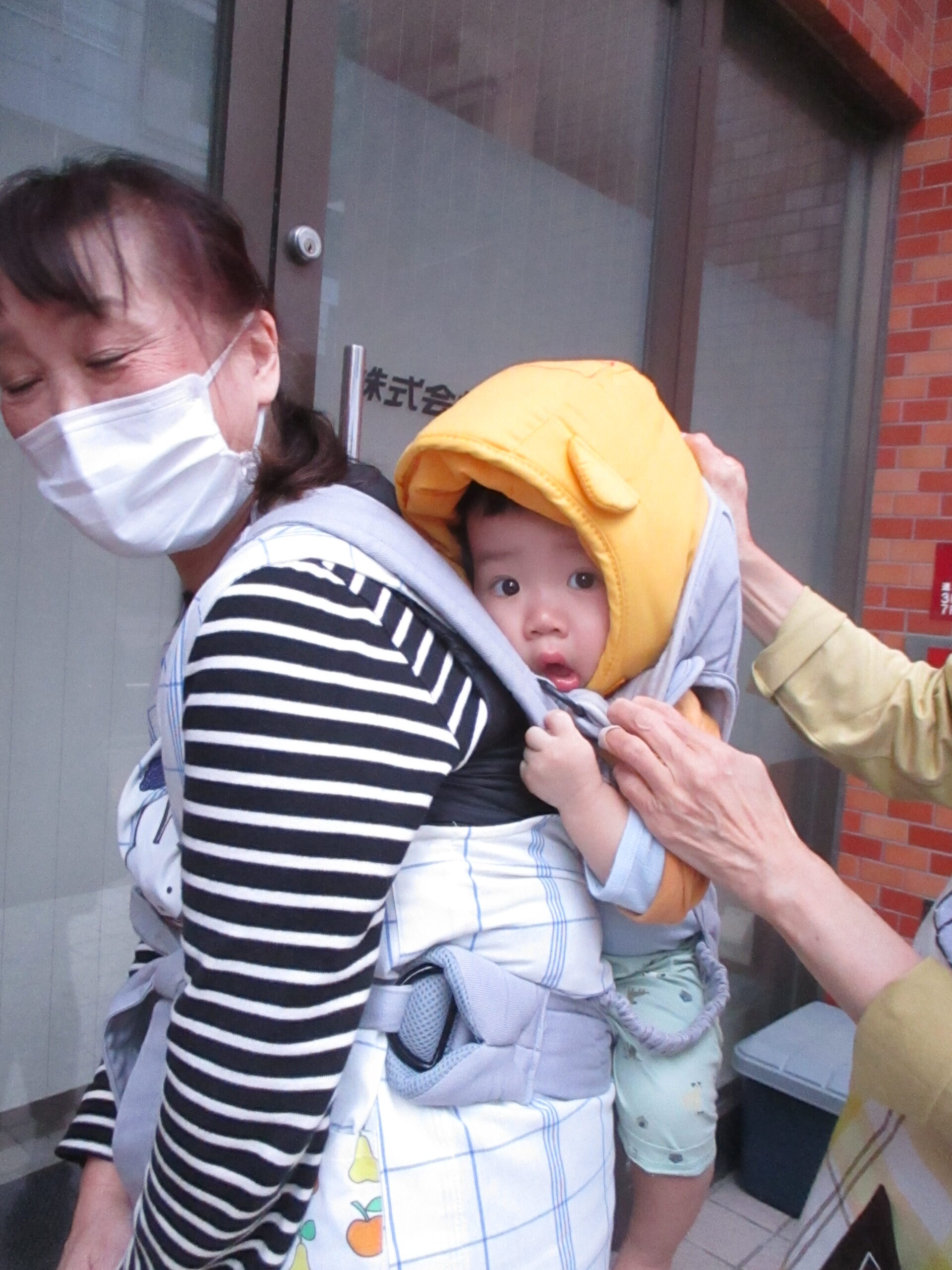 今日は、10月の避難訓練を行いました。 今回は火災発生し、時間が夕方という事で保育士も少なく、 そのような時にはどうするか?という設定でした。 0歳児は、初めておんぶを経験し、緊張気味でした。 1・2歳の園児たちは、張り切って靴を履いてくれて、 おしゃべりもしないで、避難してくれました。 少ない人数でしたが、少しずつ訓練が身についているんだと感じ、 訓練の大切さがわかりますね。