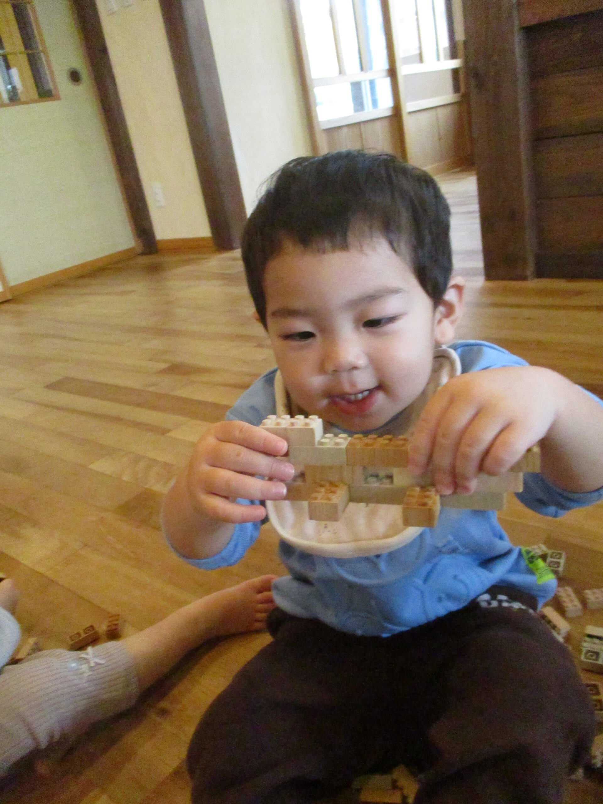 今日のくり組さんの活動ではブロックやポットン落としで遊びました。ブロックでは1つ1つ上手に繋げ形を作っていました。