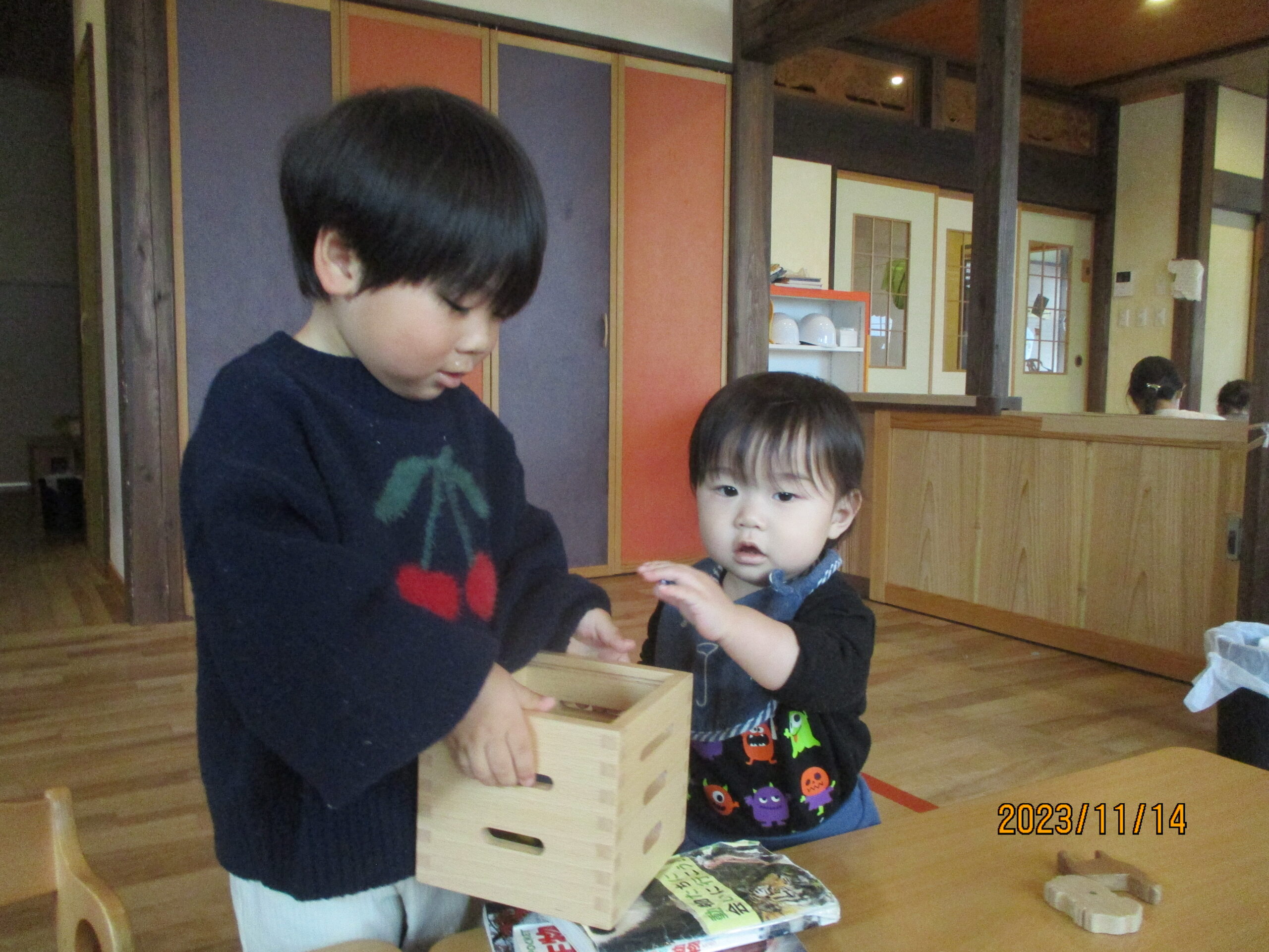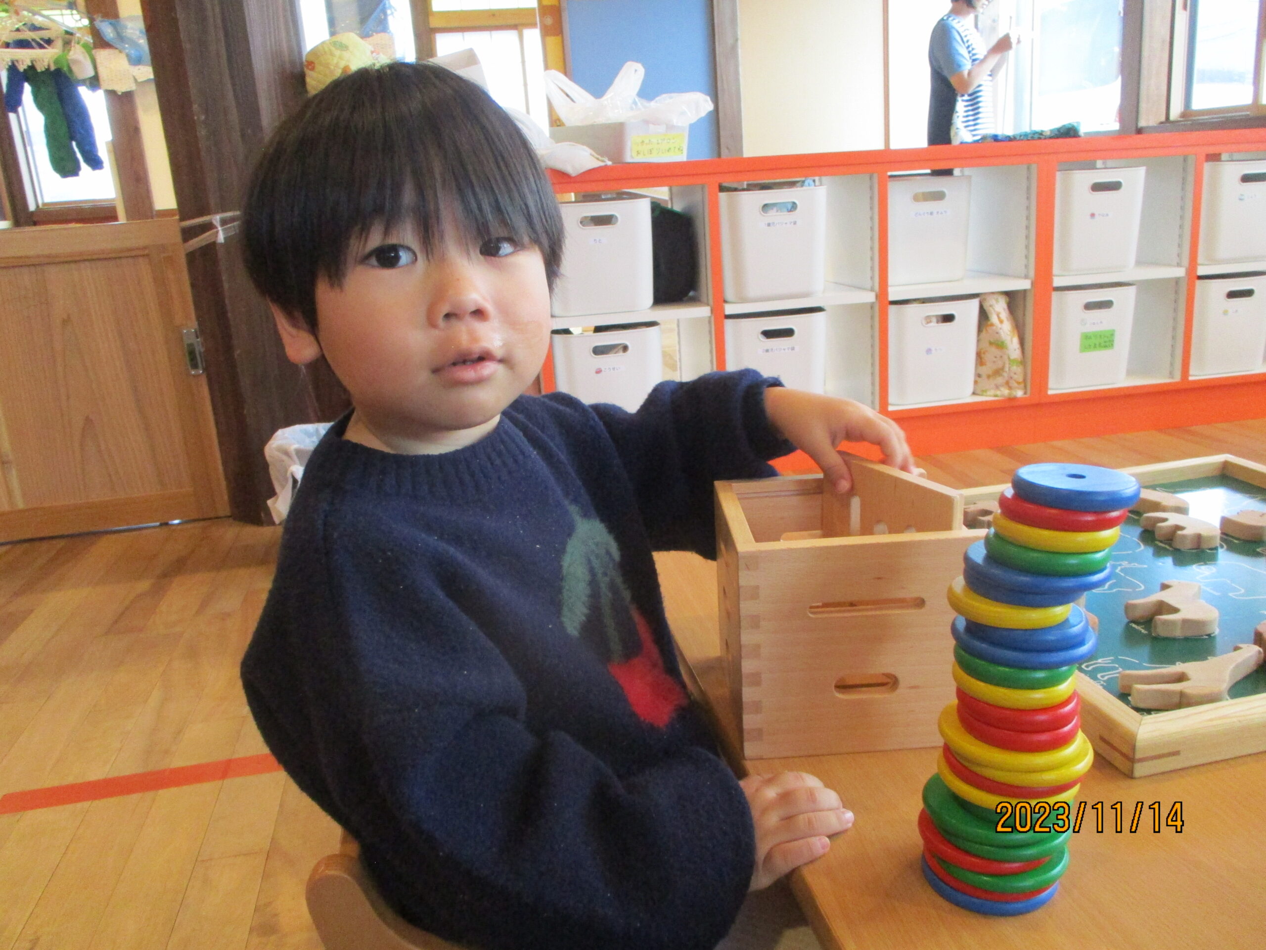 片付けを教えてくれる優しいお友達です。小さいお友達も真似をしてくれています。