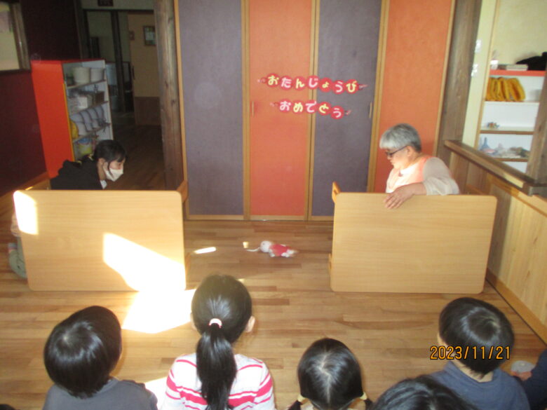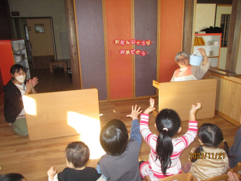 答えが当たるとみんな、大喜びでした。お誕生会は楽しいですね!