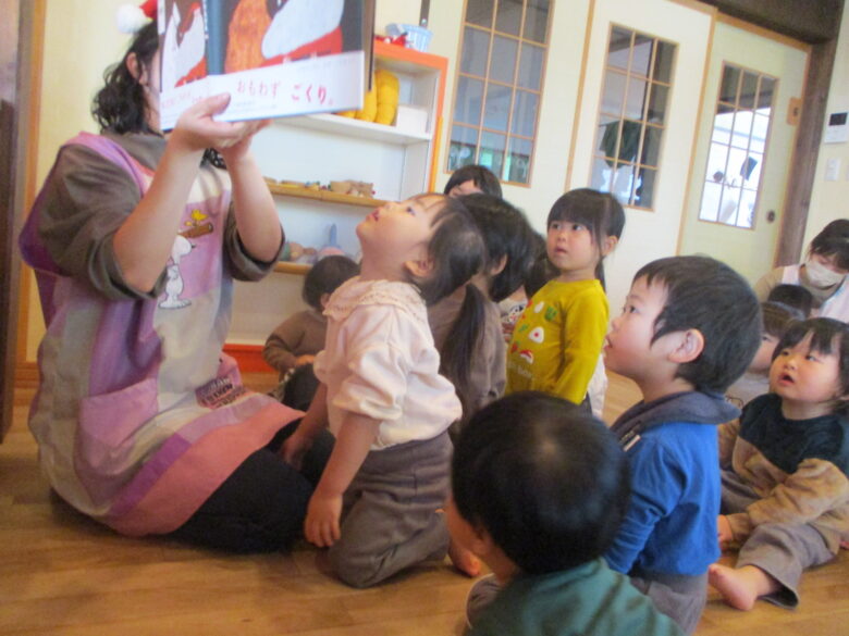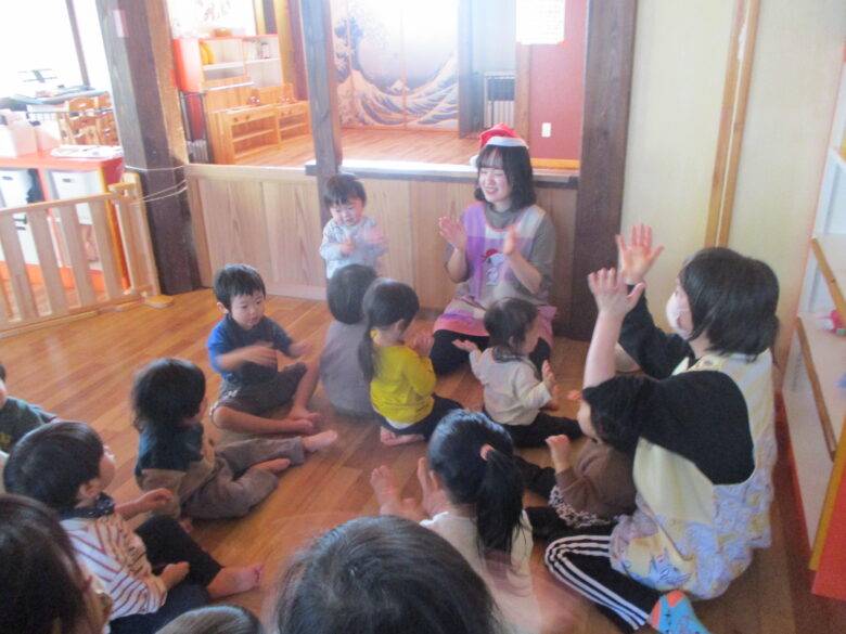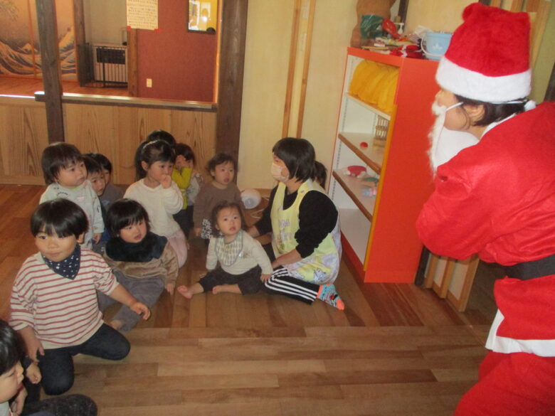 今日は、クリスマス会の日でした。絵本を通してクリスマスに対する期待感が高まります♪サンタさんについて、知ってくれているお友達もいましたよ。