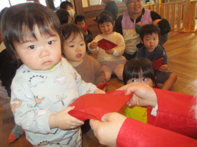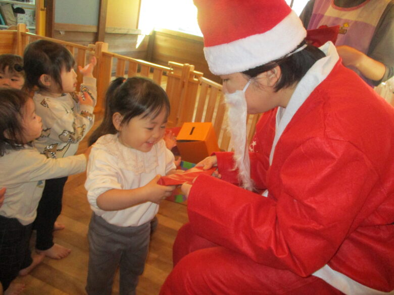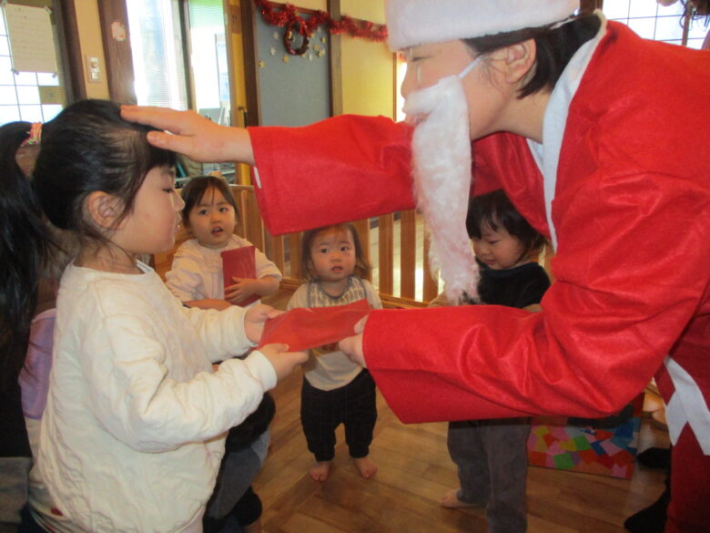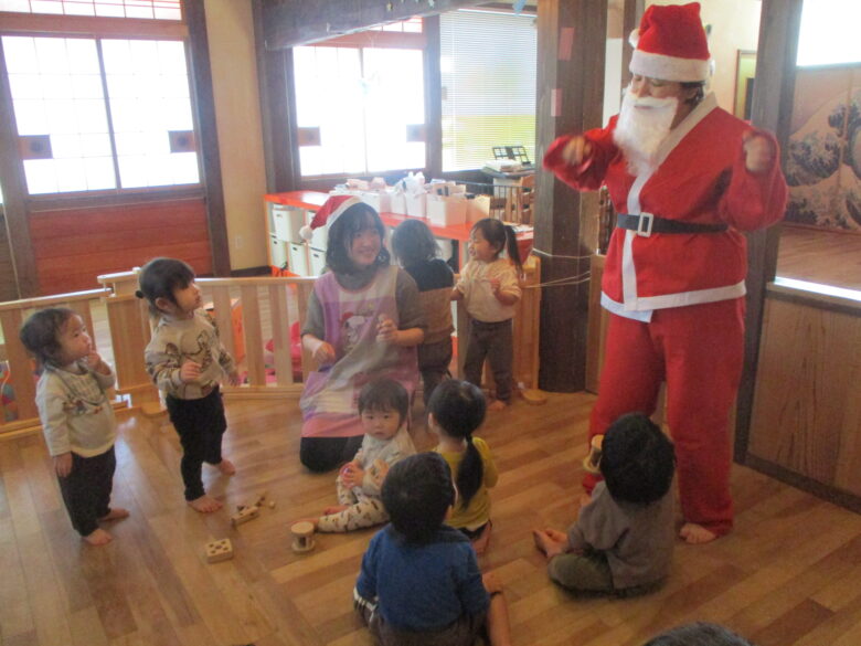 その後は、サンタさんと“赤鼻とトナカイ”を踊り、お別れをしました。最後に、“あわてんぼうのサンタクロース”の歌に合わせて、人形が踊るのをワクワクとした表情で見てくれましたよ。楽しい会はあっという間でした♪
