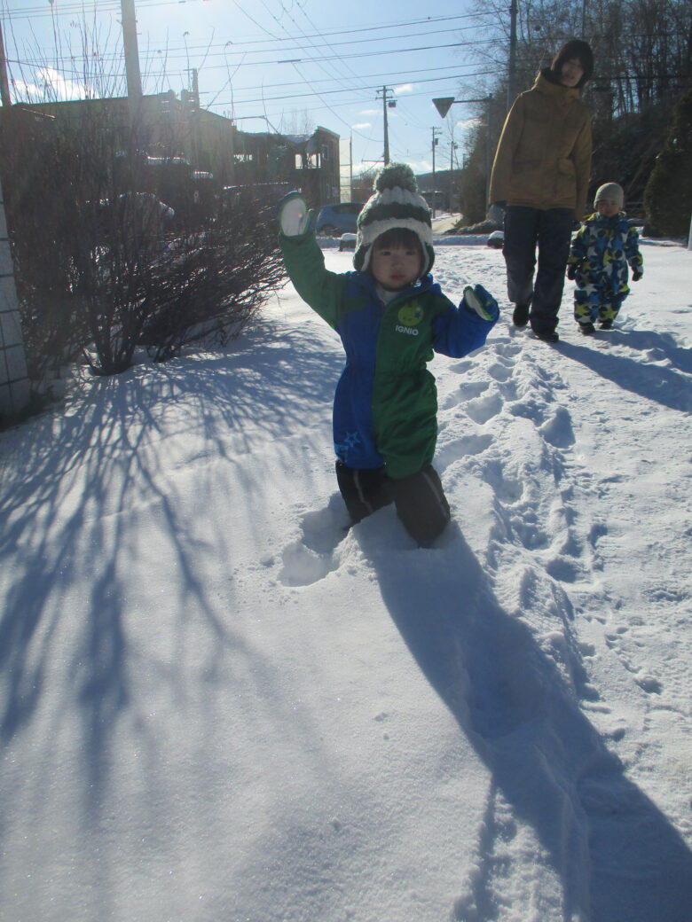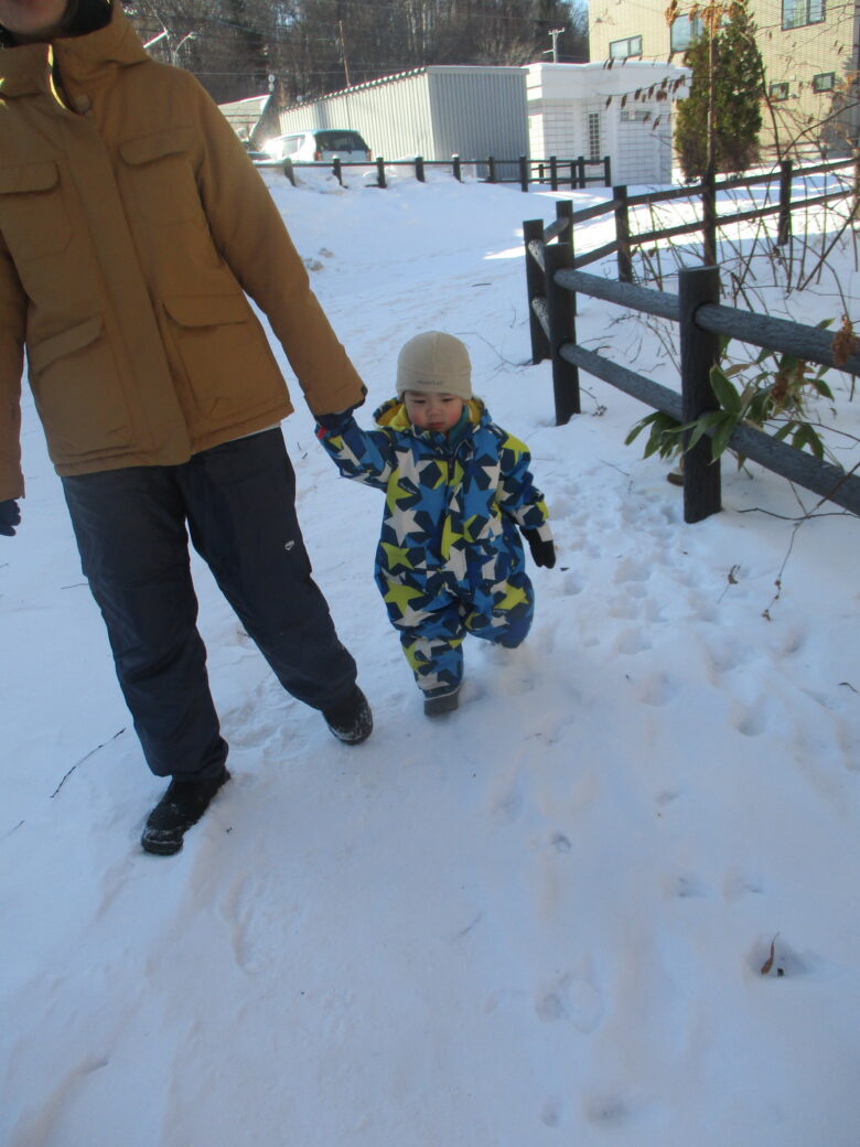 今日は藤野東公園に行ってきました。雪道の公園の中を頑張って歩いていましたよ♪