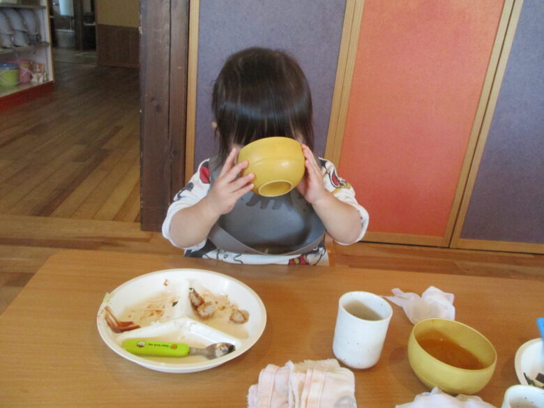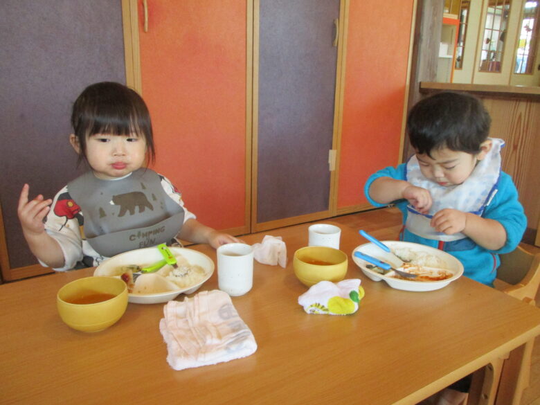 公園でたくさん遊んだ後は給食の時間!!みんないっぱい食べていましたよ♪