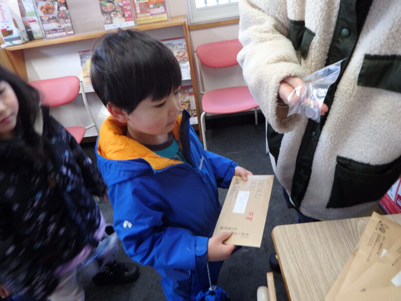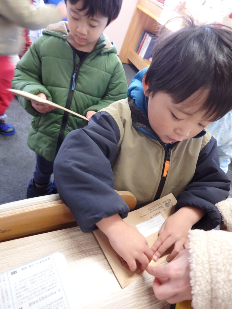 自分たちで作ったはがきで、お父さんお母さんに年賀状を作成したそうです!