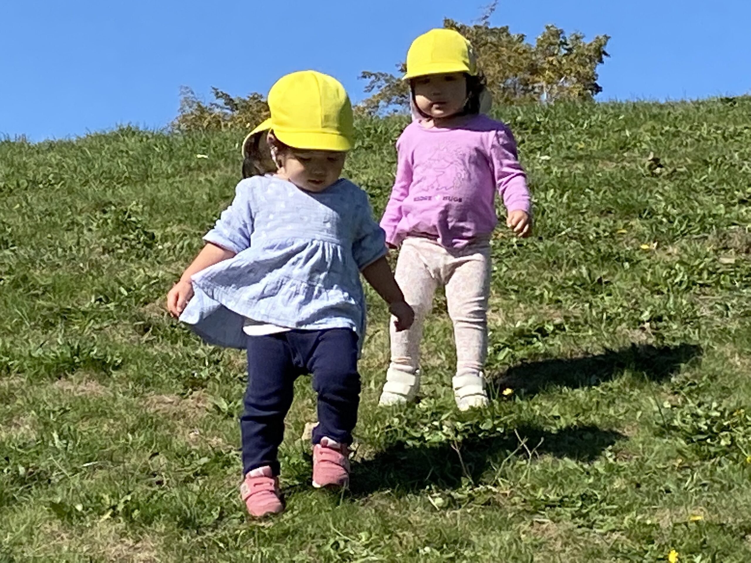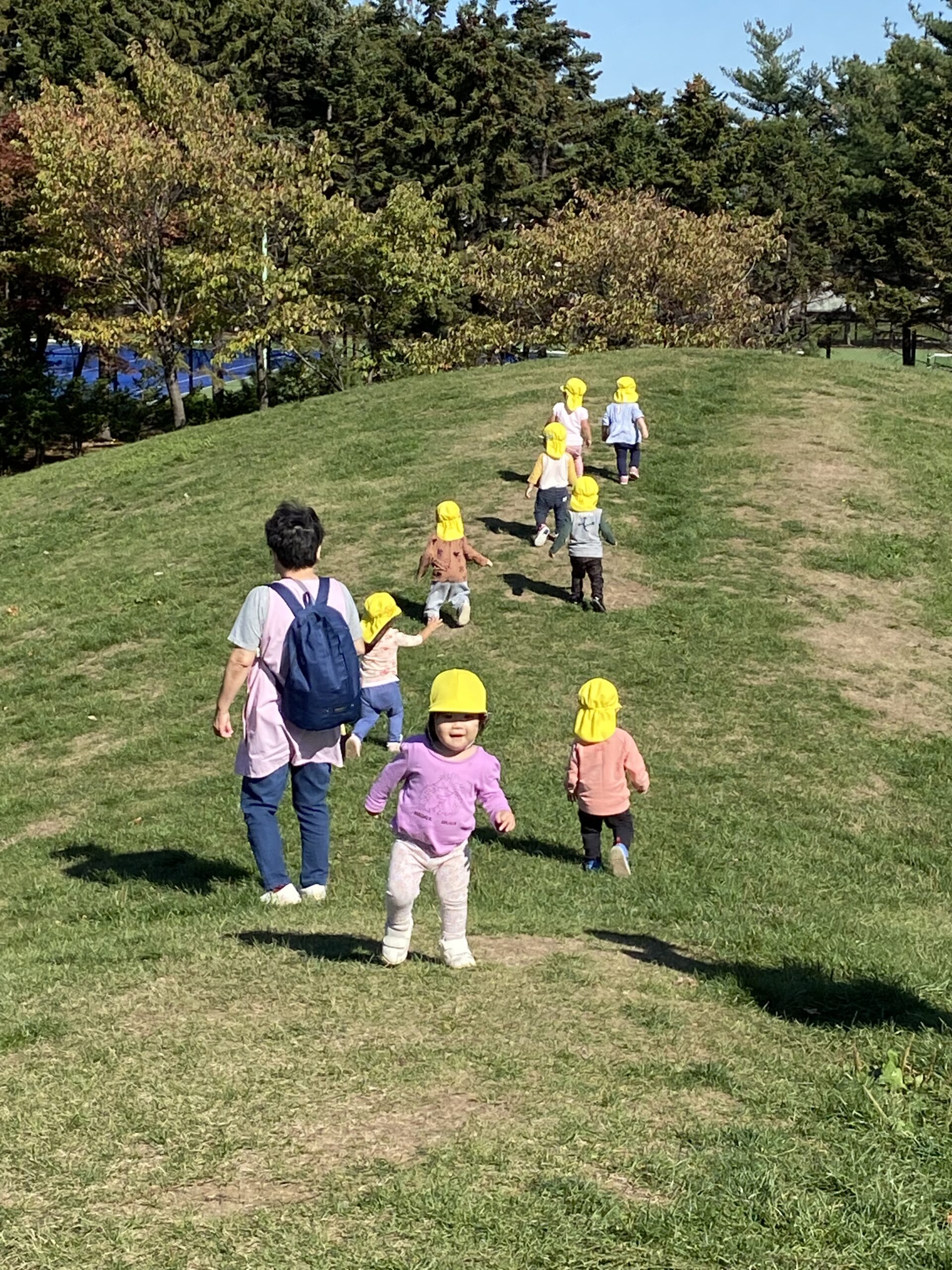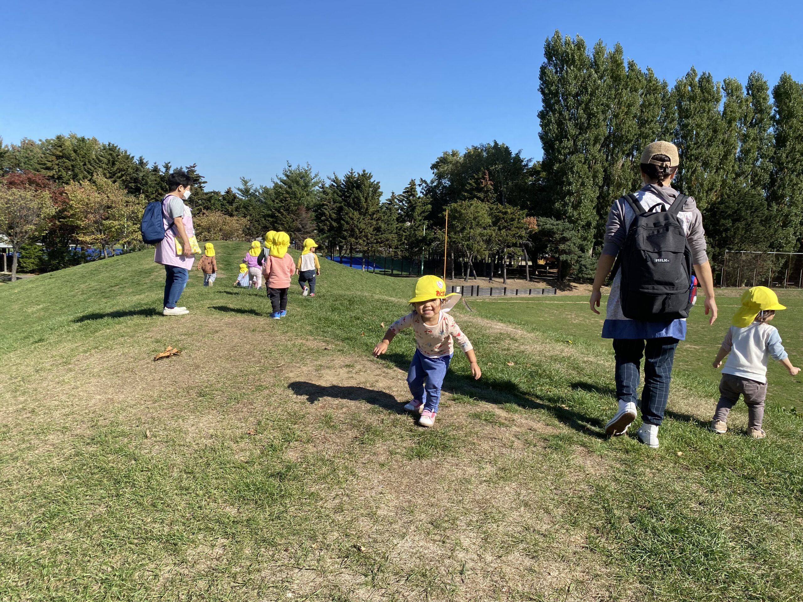 大きな築山を小さい体でバランスを取りながら、何回も往復するたくましい1歳児さんたちです。