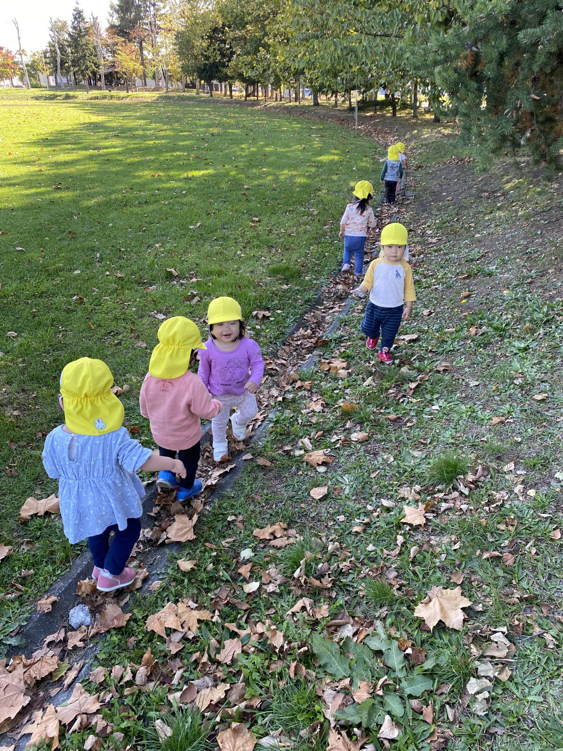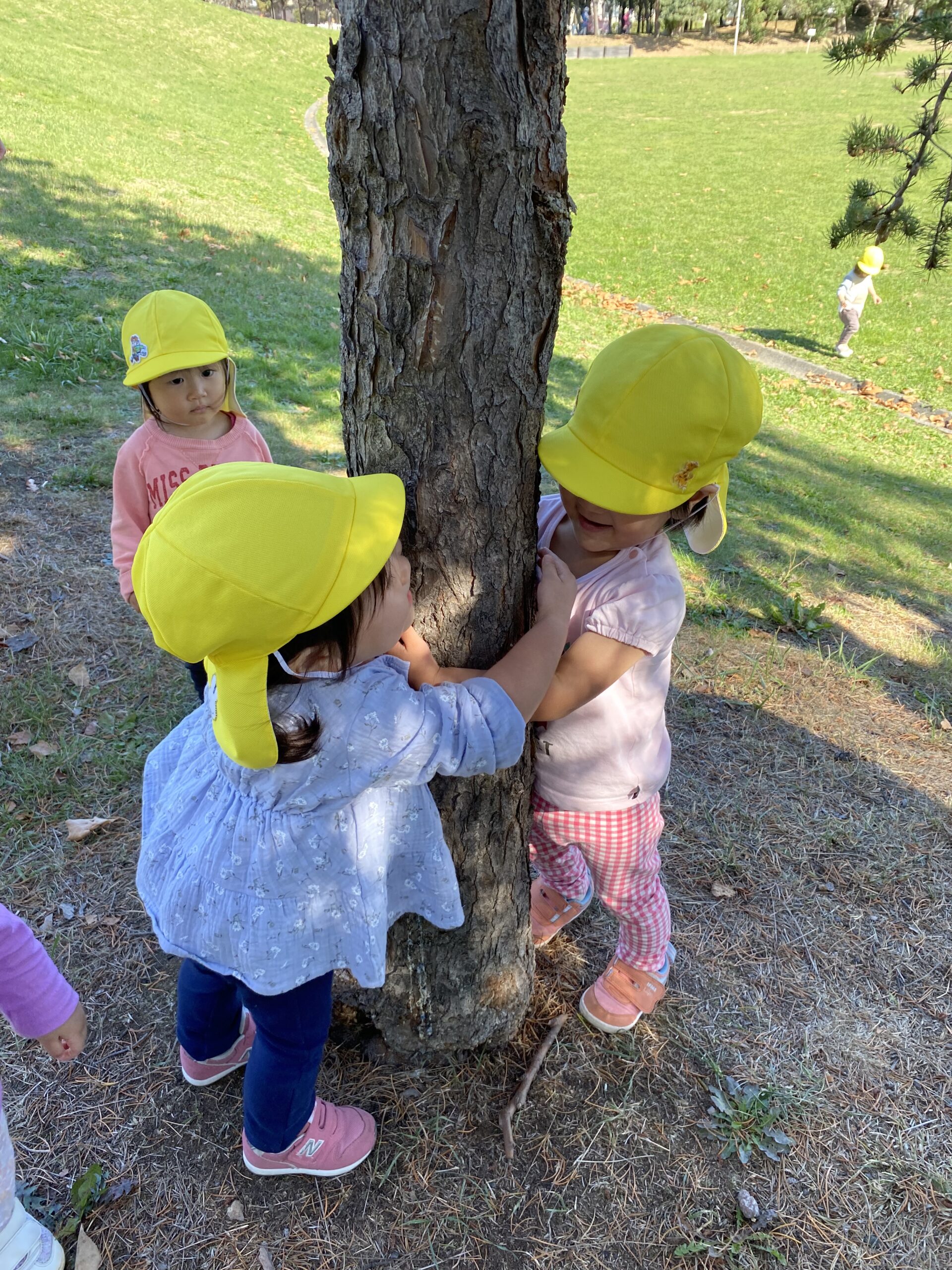 道をたどって一列に歩いたり、大きな木を見つけてギュッと抱きしめたり・・・😘 蝶々を追いかけたりと、たっぷり自然と触れ合うことが出来ました。