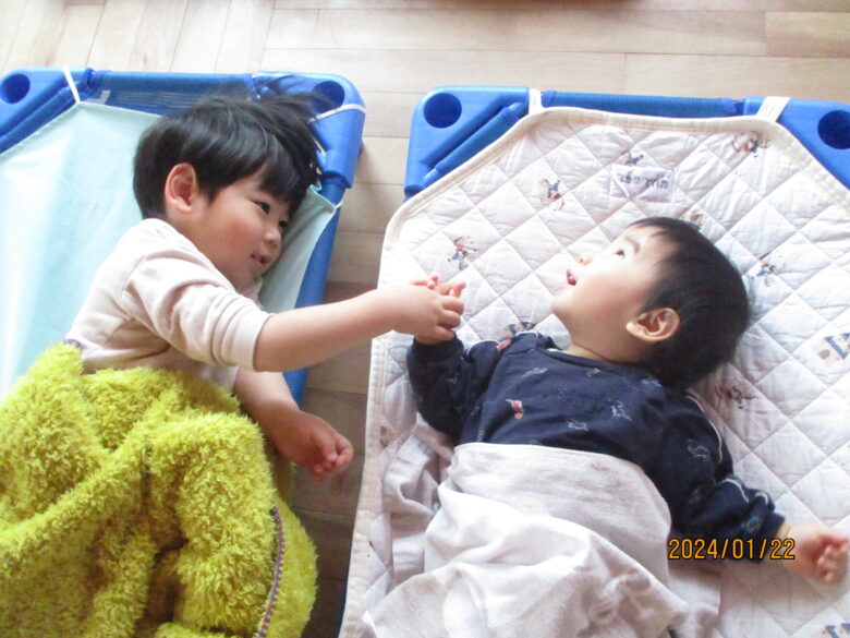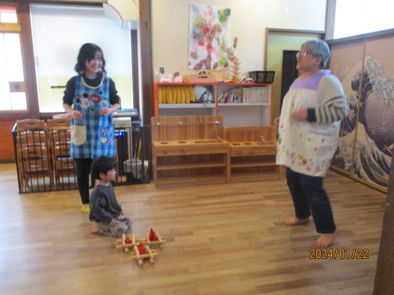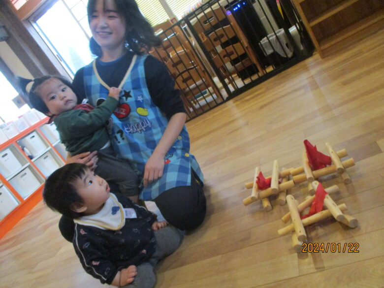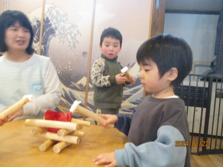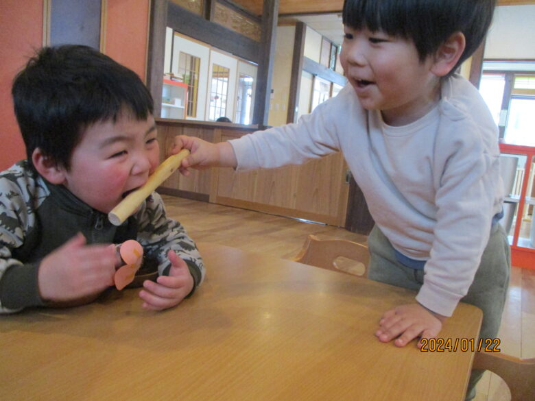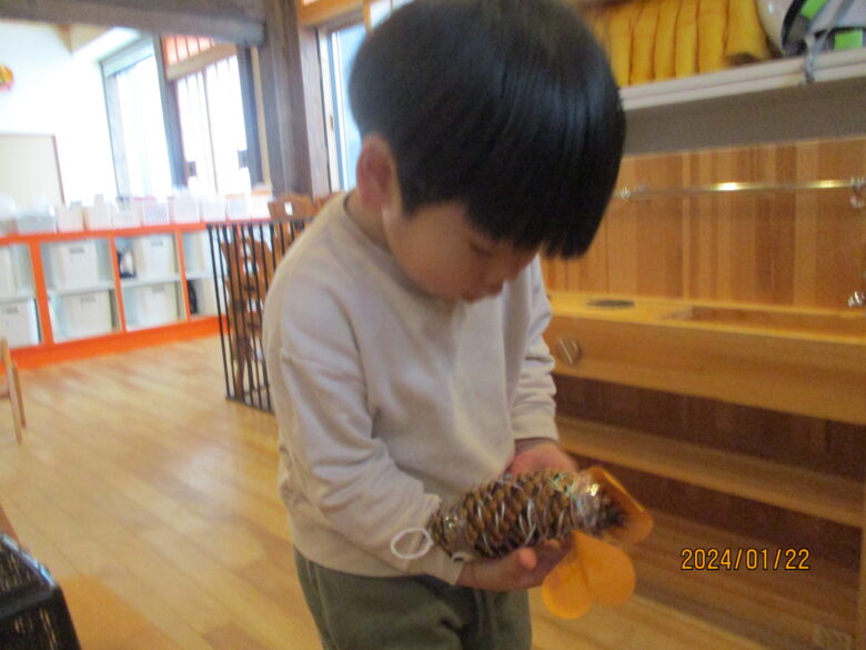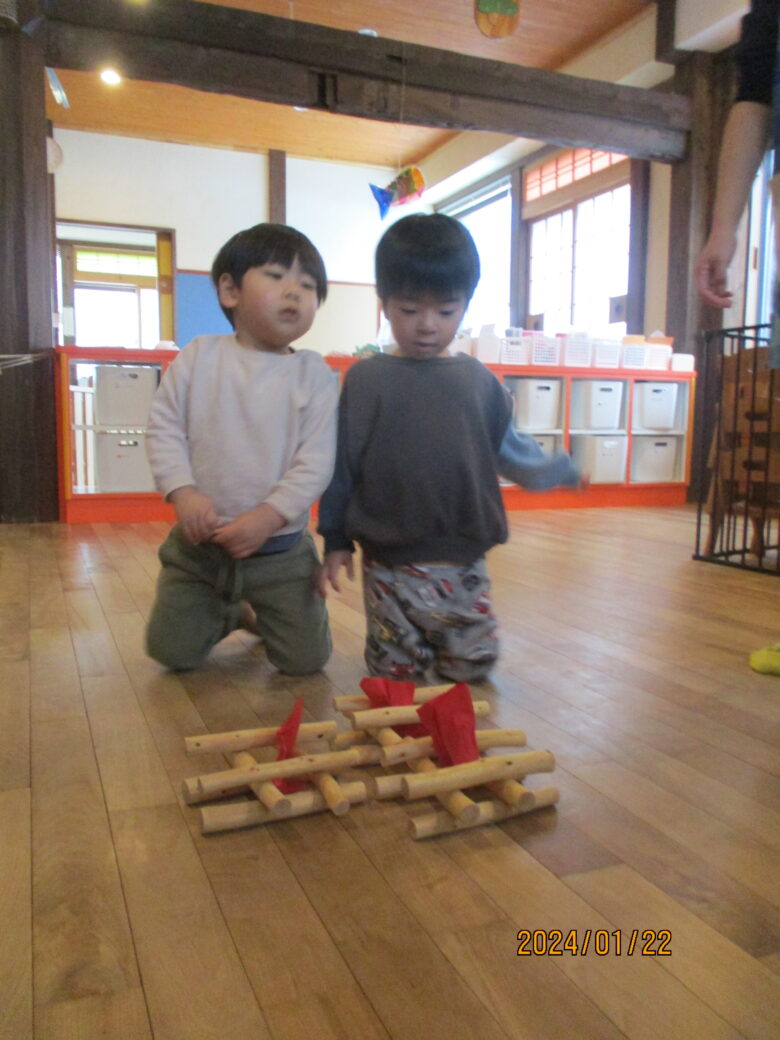 今日は、焚火ごっこをしました。触ったら不思議と暖かい気がします。