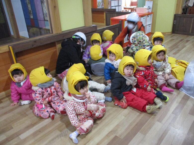 今日は、悪天候で延期していた避難訓練を行いました。