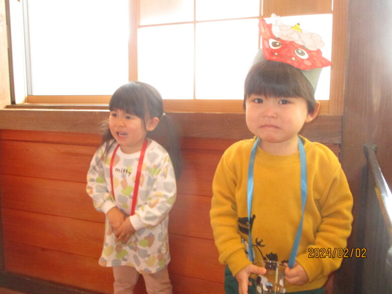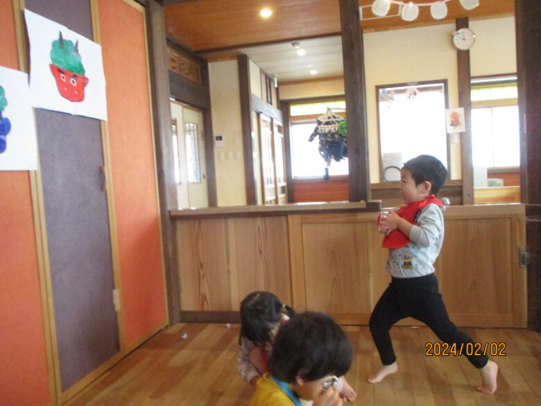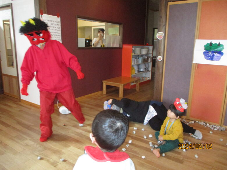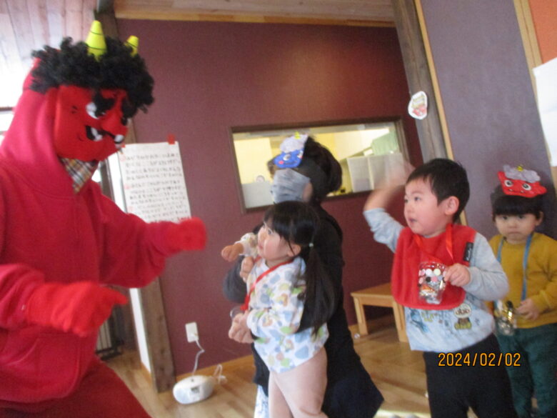 鬼の登場にみんなびっくり!!!泣きながらも、豆を投げる子どももいてみんなの逞しさに感動しました…!