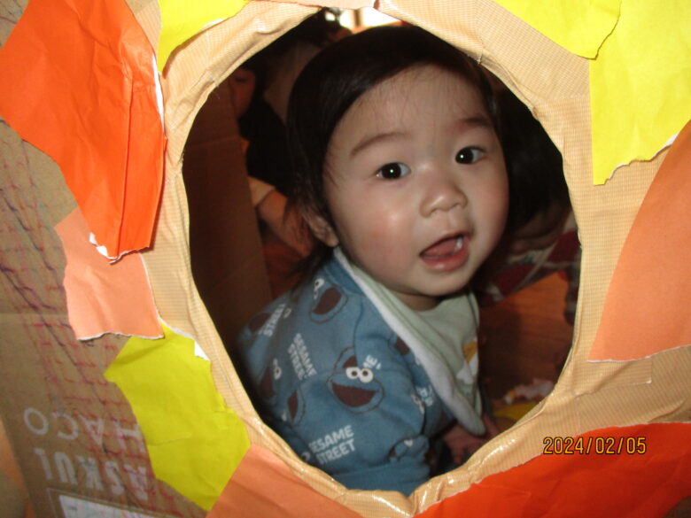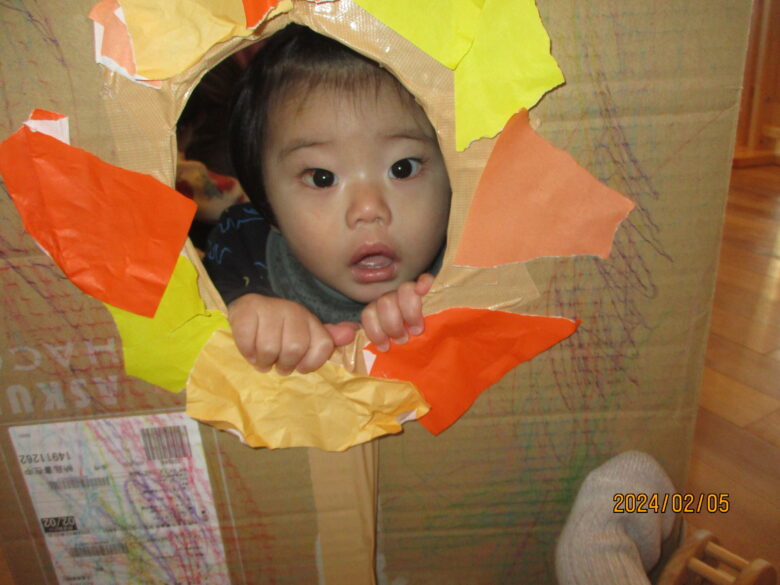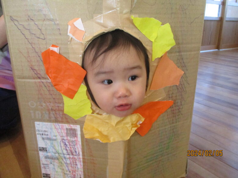 ライオンの完成です♪穴をのぞくと、顔はめパネルのようになり、ライオンに変身です。