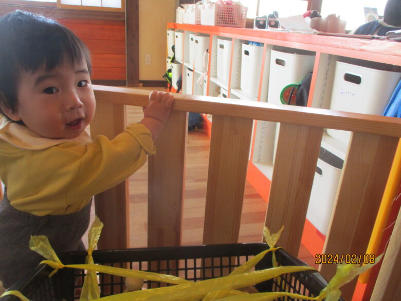 HOME ブログ・新着情報 藤野園 どんぐり、くり組 あみあみに手を入れてみたよ♪