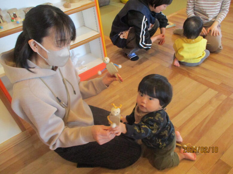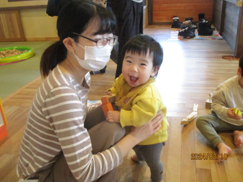 本日は、保育参観の日でした。朝の会からのスタートです♪賑やかな雰囲気に緊張気味の子ども達。絵本に合わせて微笑んだり、「あはは!」と笑ったりする中で緊張が解れていきました。