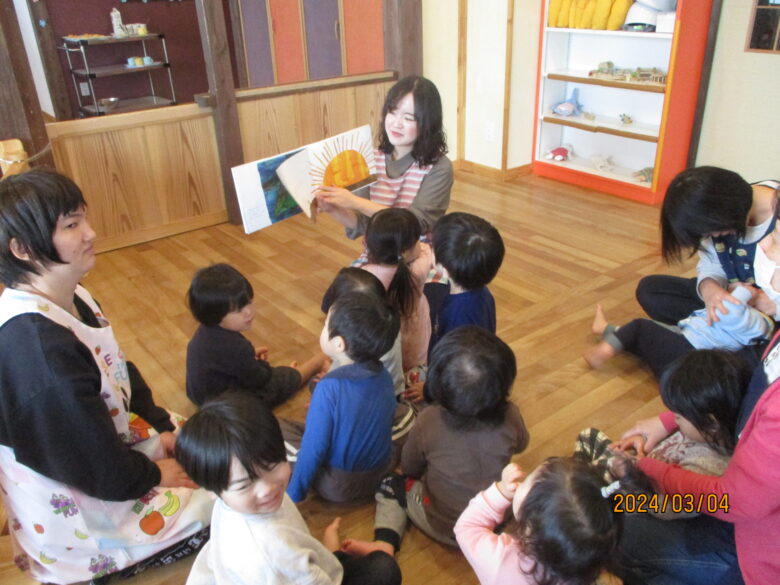 今日は朝の会にみんな大好き「はらぺこあおむし」を見ました♪みんな真剣な表情ですね!!