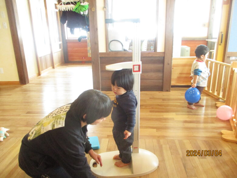 身体測定も上手に測れるようになりました。大きくなったかな・・・