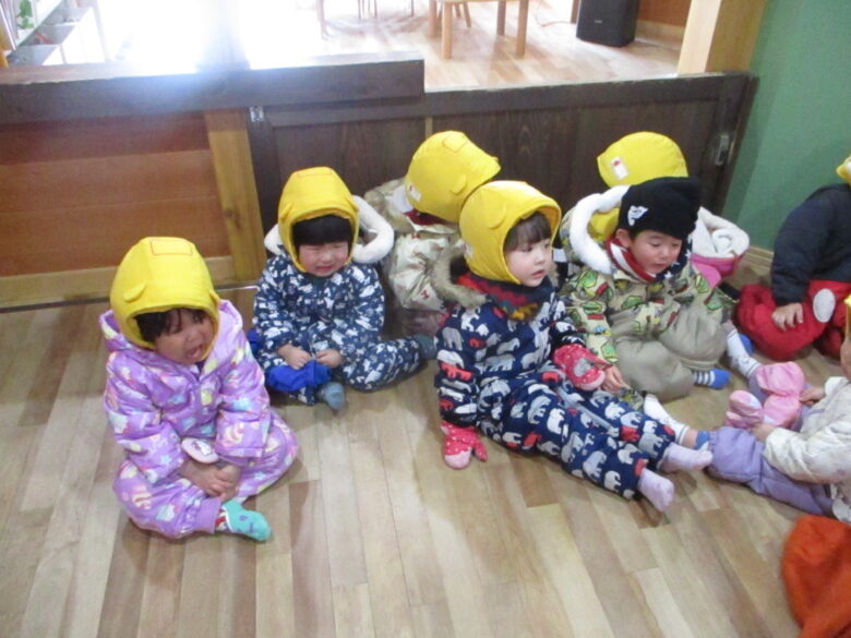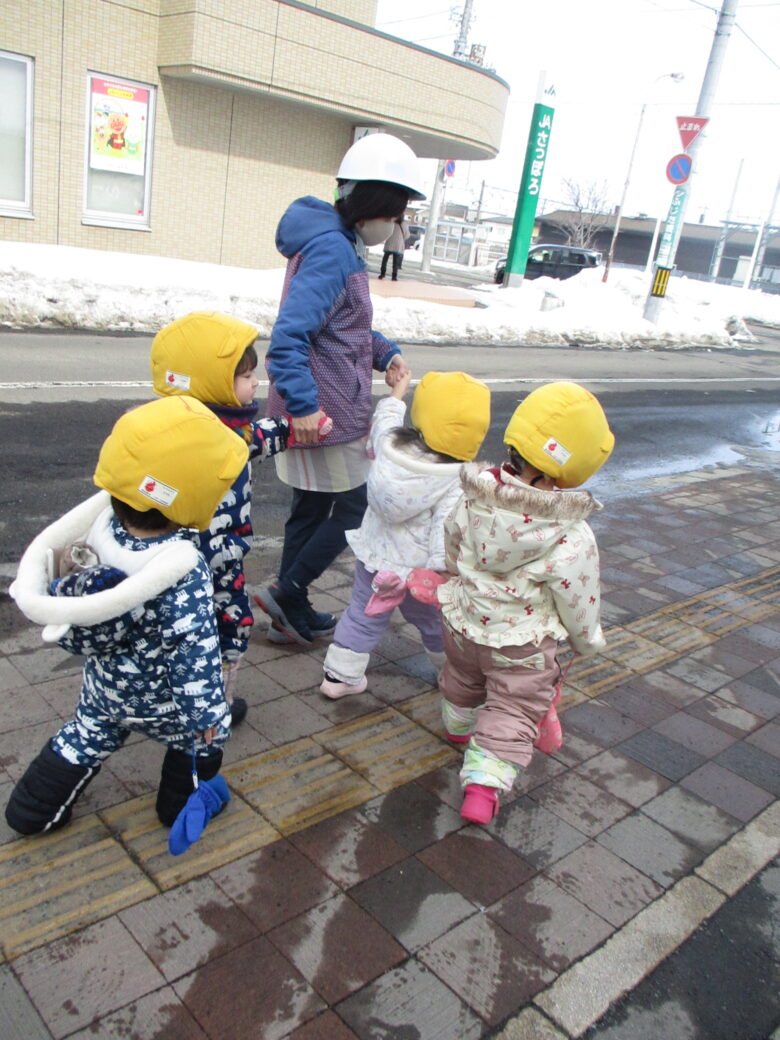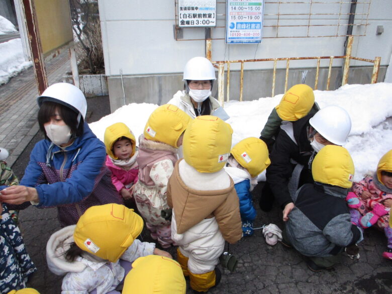 今日は、3月の避難訓練を行いました。 園内のストーブより火災が発生! 第一避難場所への避難をする為、みんなでお外に出ました。 雪道にはすっかりと慣れている子ども達。 時々、ツルっとなるものの転ばずに避難場所に行く事が出来ました。 お友達と離れないよう、手を繋ぐ事もとても上手になり、 落ち着いて避難が完了しました。 今年度最後の訓練。1年を通してとてもしっかりと参加出来るようになり、 嬉しく思います。 4月から来る、新しいお友達に上手なお手本が見せられるかな😊