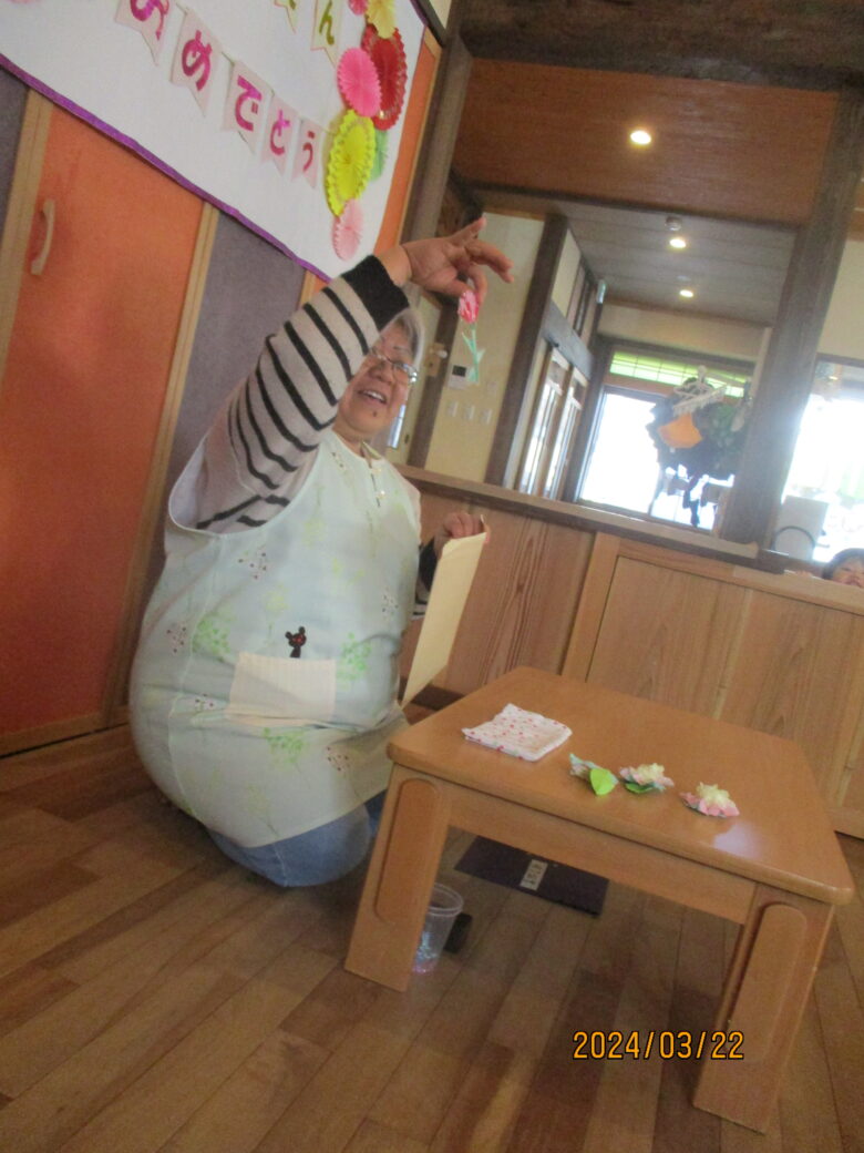 袋から出てきたお花をもらい、とても嬉しそうでしたよ!残りわずかとなりますが、みんなで元気に遊び、たくさんの思い出をつくっていきたいと思います。