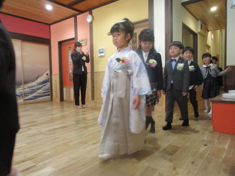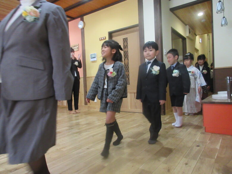 かえで組さんの卒園式がありました。<br /> ドキドキしながらの入場です。