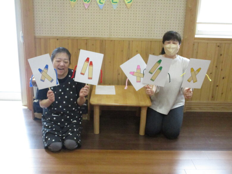 保育者からのプレゼントは ♪どんないろがすき♪ のペープサートです。