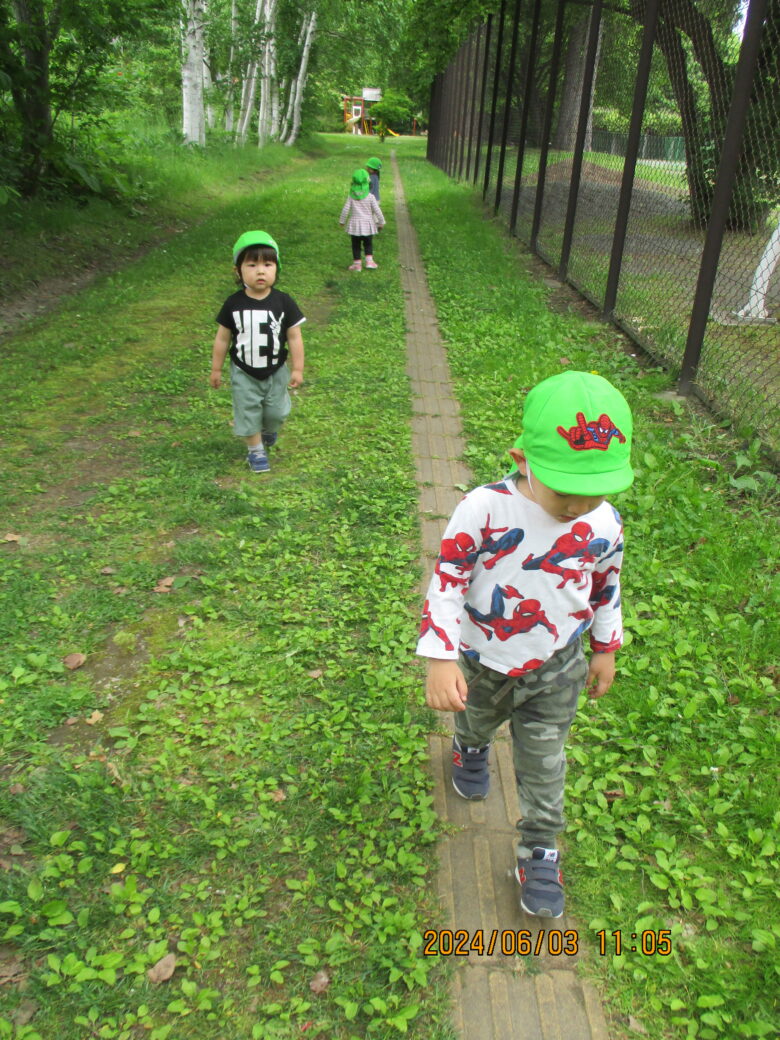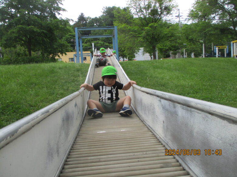 無垢の家でたくさん遊んだ後は、藤野東公園に行き滑り台や、少し急な坂を登ったり降りたりと身体を使って楽しく遊びました♪