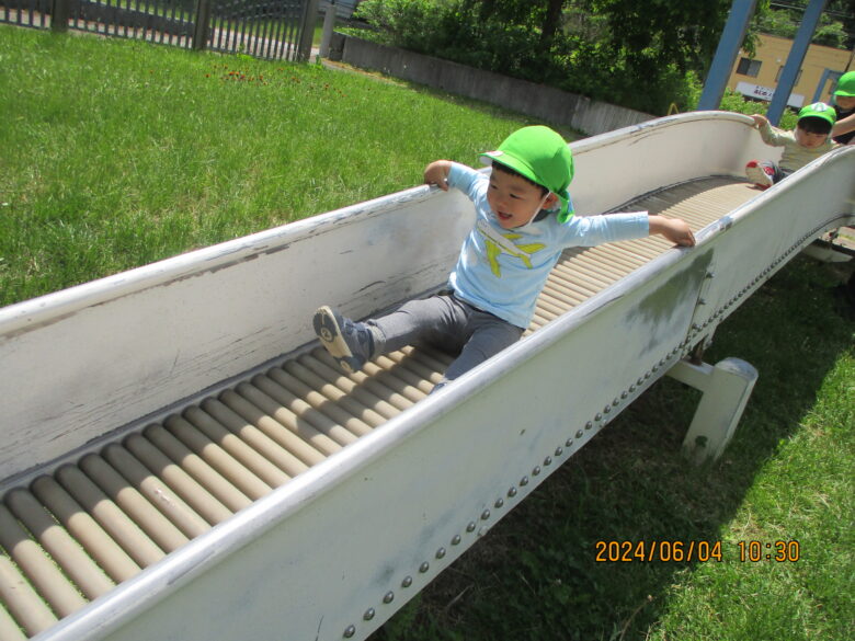 今日は、くるみ組さんがブロッコリーをプランターに植える日です。それを見学した後、くり組さんは藤野東公園の消防署裏に行き遊んできました。 滑り台も楽しそうな笑顔で滑っていたくり組さんでした。