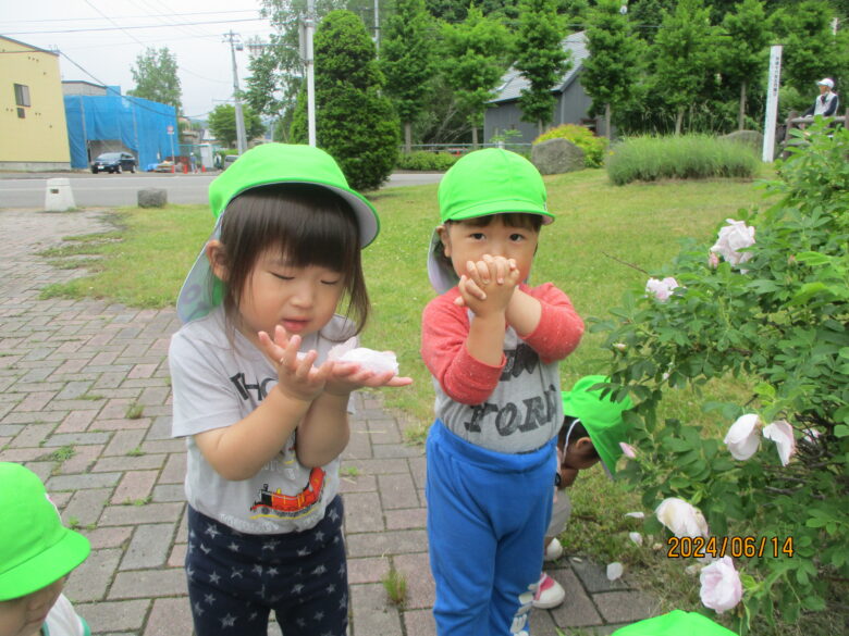 公園に着くと、可愛いお花発見!!!みんな「可愛いね」といい眺めていましたよ。