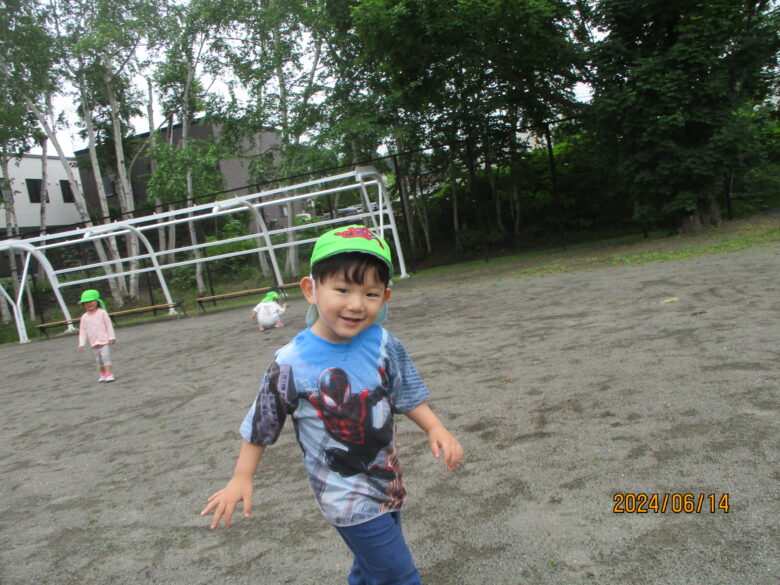 グラウンドでは「よーいどん」と言いながら走ってたくさん身体を動かしましたよ。