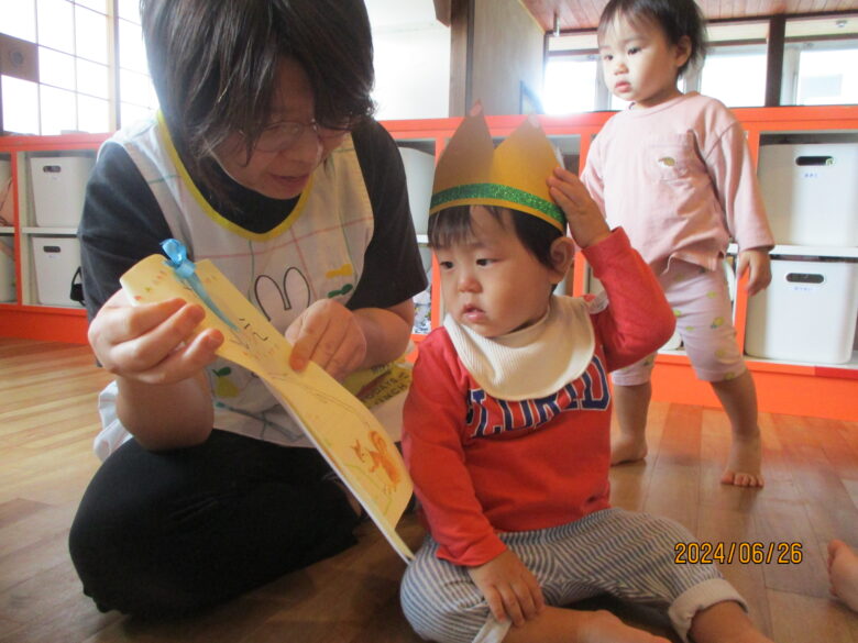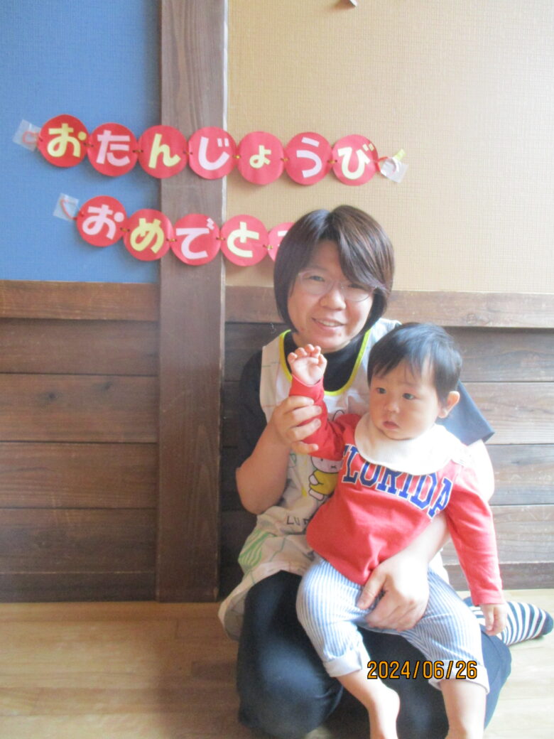 6月26日はどんぐり組さん一名誕生日の日。みんなで「おめでとう」しました。